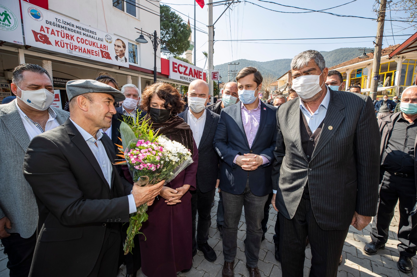 Başkan Soyer, Menderes ziyaretleri kapsamında Değirmendere Köyü Tarımsal Kalkınma Kooperatifi'ni ziyaret etti. Soyer, “Değirmendere aslında bütün bölgeye örnek olan, ilham veren kooperatifleşmeyi sürdürüyor. Biz de onlara destek vermeye devam ediyoruz. Bu bölge Türkiye'de çok ayrıcalıklı bir bölge. Biz çok şanslıyız. Millet karla boğuşuyor, biz bu güzel coğrafyada, bereketli topraklar üzerinde yaşıyoruz. Zor dönemlerden geçiyoruz. Bunları el birliği yaparak atlatacağız. Biz bunun altında kalmayacağız, destek olursak bütün felaketlerin sıkıntısını, tahribatını hafifletiriz” ifadelerini kullandı.