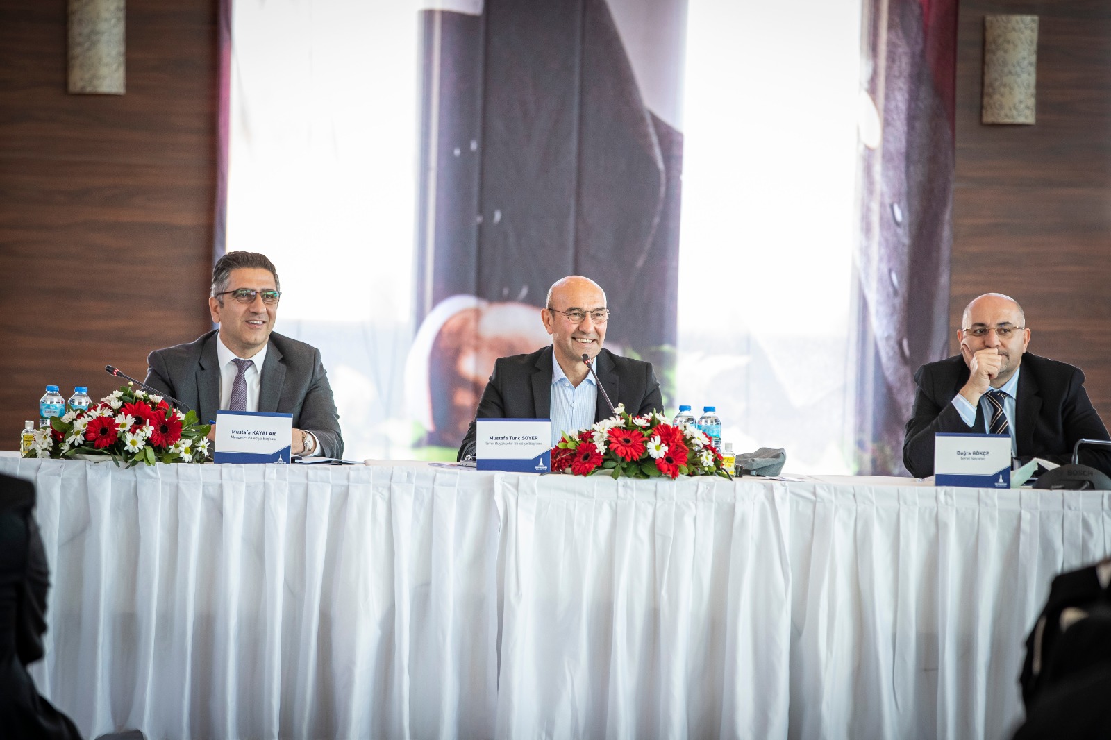 Toplantıya Menderes Belediye Başkanı Mustafa Kayalar, İzmir Büyükşehir Belediyesi Genel Sekreteri Dr. Buğra Gökçe, Genel Sekreter Yardımcıları Ertuğrul Tugay, Yıldız Devran, Suphi Şahin, Eser Atak, İZSU Genel Müdürü Aysel Özkan, ESHOT Genel Müdürü Erhan Bey, İZBETON Genel Müdürü Heval Savaş Kaya, daire başkanları ve bürokratlar katıldı.