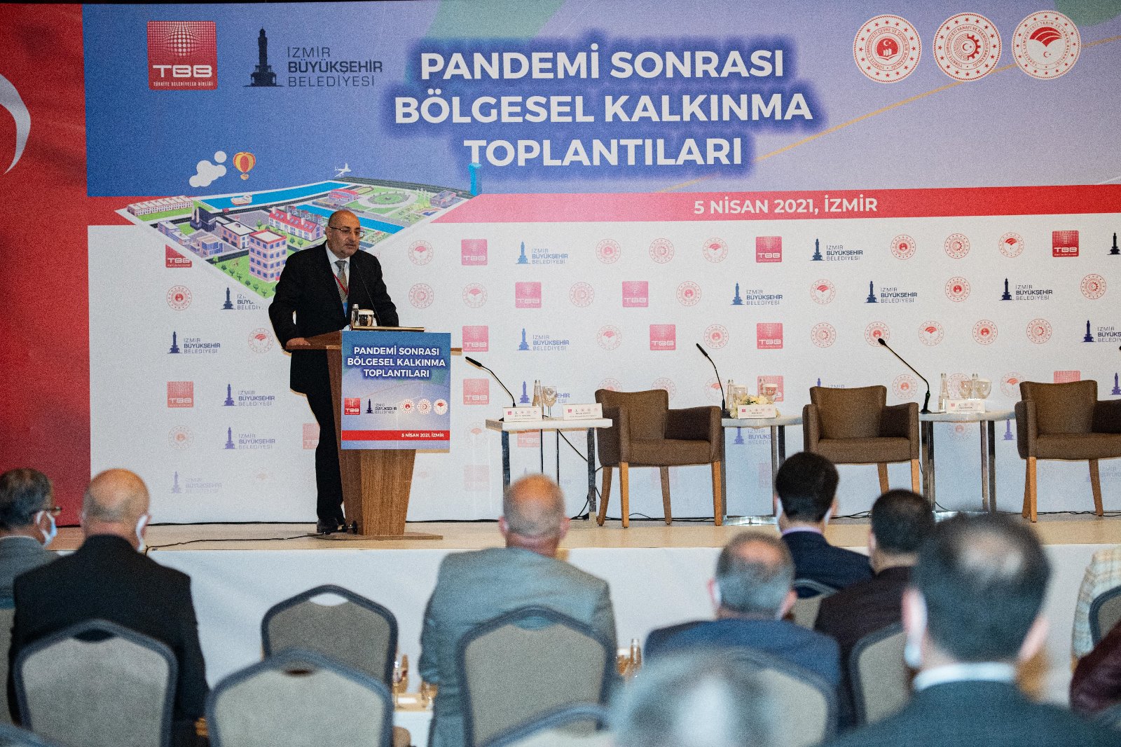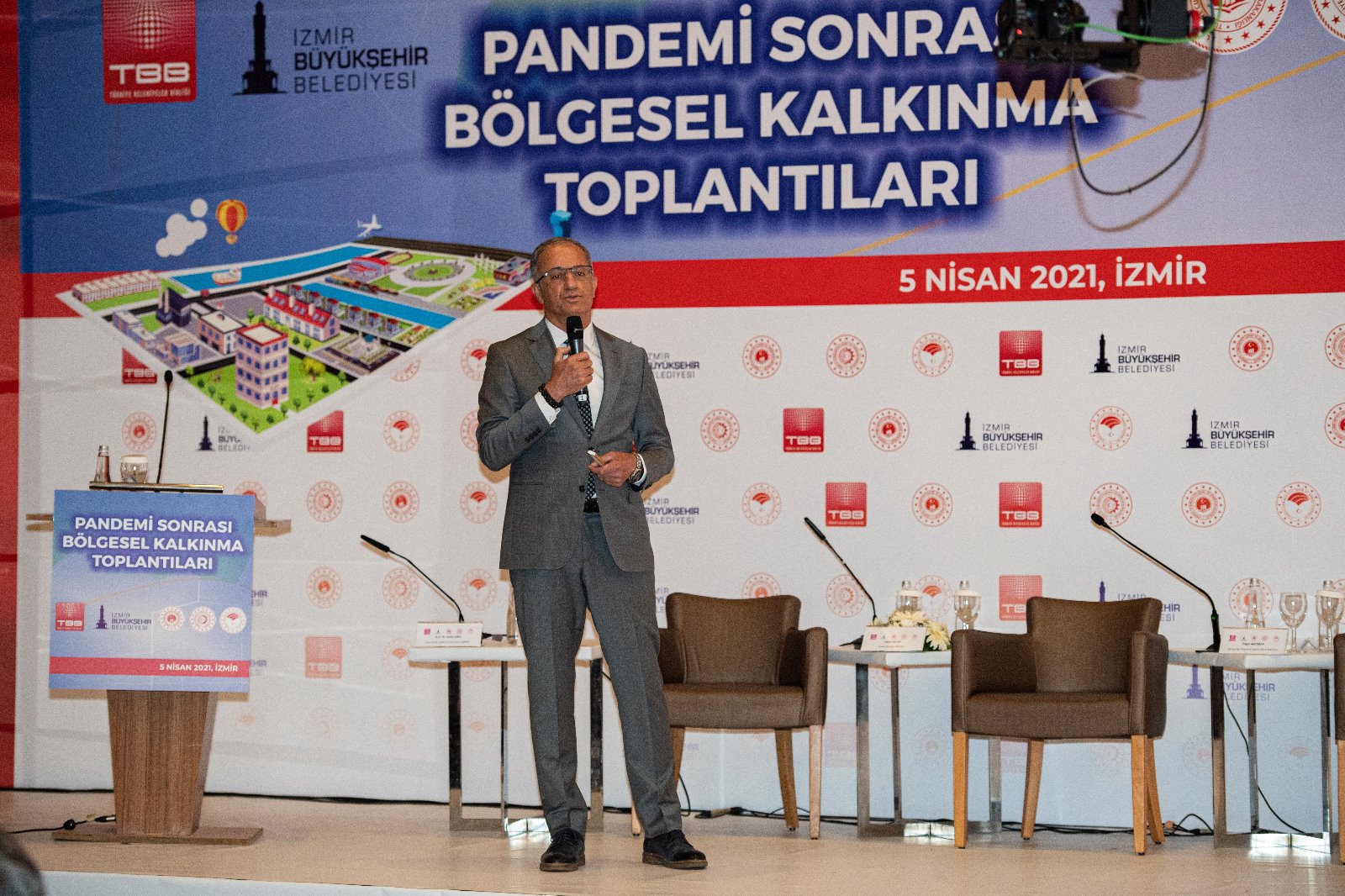İzmir Büyükşehir Belediyesi Genel Sekreteri Dr. Buğra Gökçe, Türkiye Belediyeler Birliği'nin (TBB) İzmir'deki “Pandemi Sonrası Bölgesel Kalkınma Toplantıları”nda İzmir'in kırsal kalkınma hikayesini anlattı. Gökçe, kırsal alanda üreticinin sahiplendiği, köylünün içselleştirdiği ve yaşamına adapte ettiği bir tarım politikası yürüttüklerini söyledi.