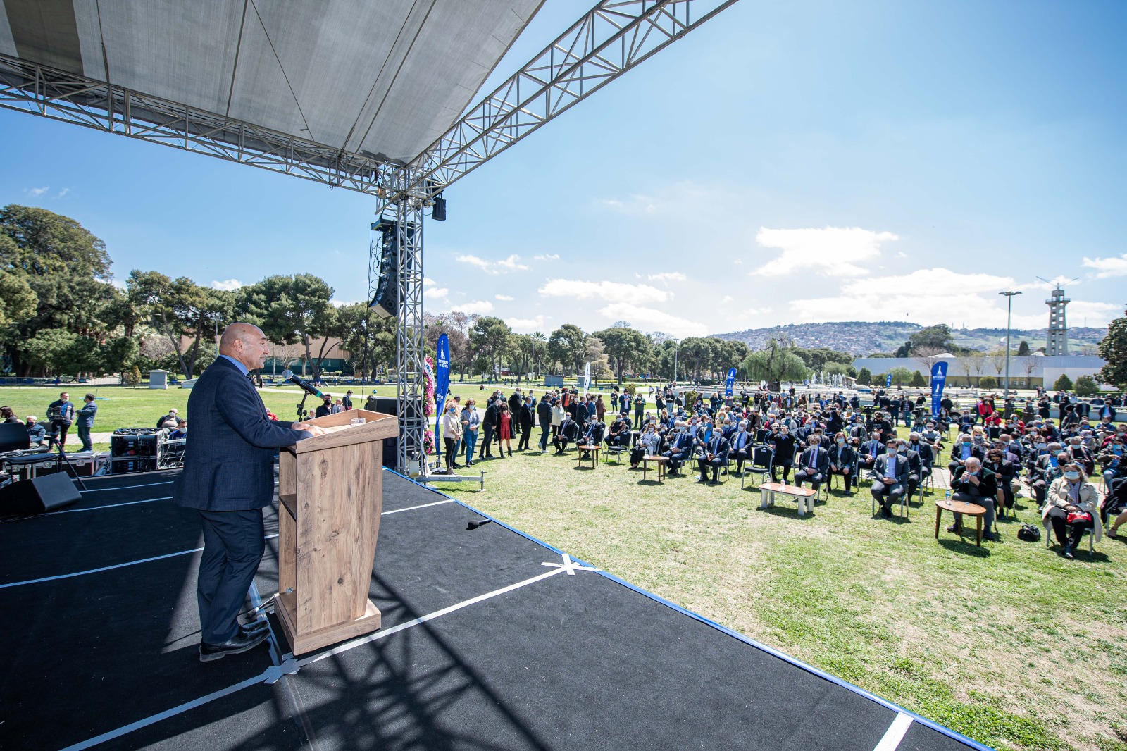 Etkinlik Tepecik Flarmoni Orkestrası’yla başladı. Açılış konuşmalarından ilkini yapan CHP İzmir Milletvekili Özcan Purçu, Romanların tarih boyunca büyük zorluklar çektiğini belirterek “Barış içinde, özgürlük içinde yaşayacağız. İzmir, bizim için çok kıymetli. Çünkü İzmir bürokrasisiyle, belediye başkanıyla, halkıyla örnek bir şehir. Tüm dünyayı gezen kardeşiniz olarak, dünyada böyle bir şehir görmedim. Herkese önem veren, herkesi sayan, seven, herkes için bir şeyler yapmaya çalışan bir insan profili var İzmir'de. Küçüğünden büyüğüne kadar herkese saygı gösteren, insan haklarını, demokrasiyi, özgürlüğü ön planda tutan bir şehir var.
