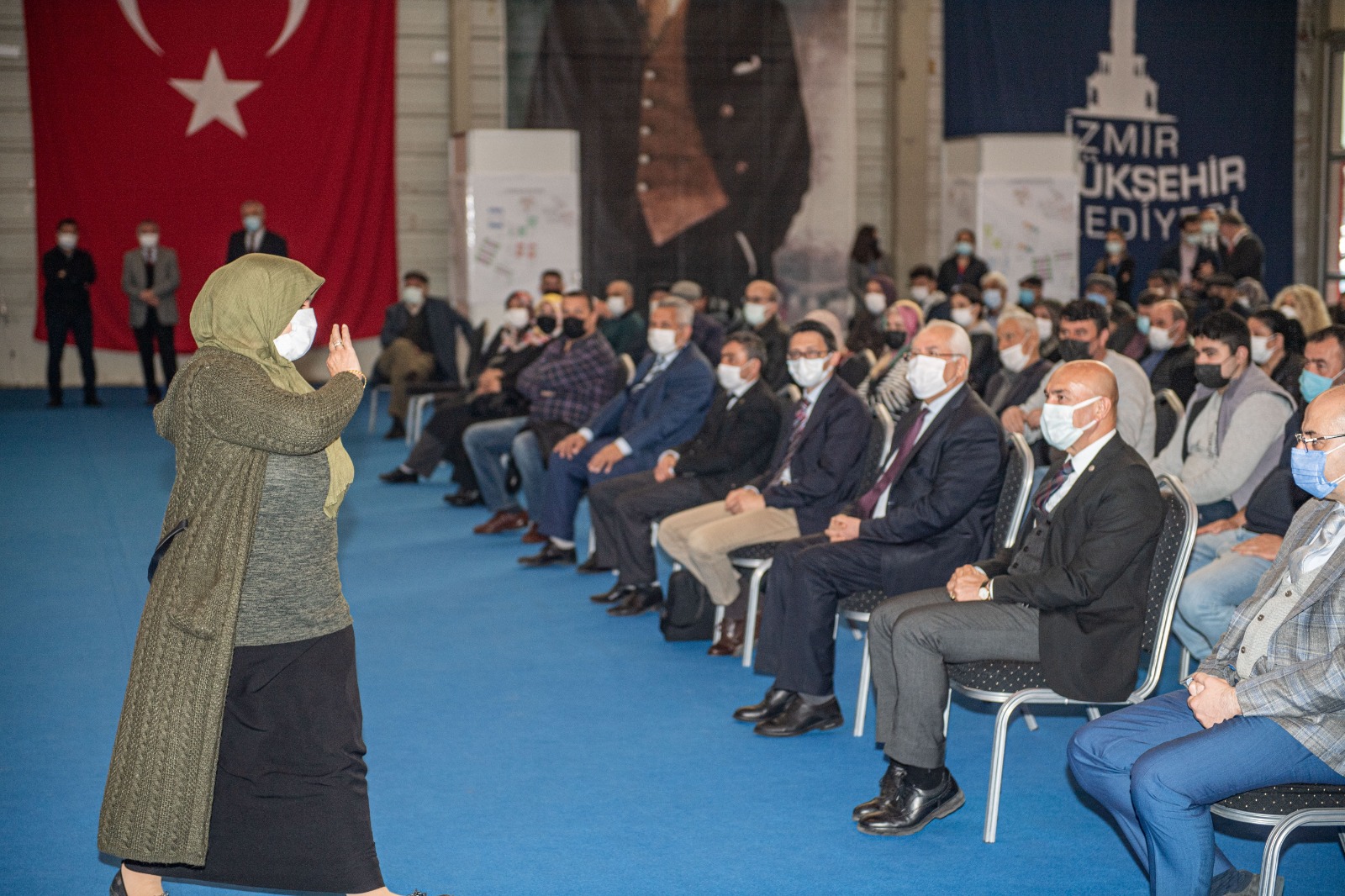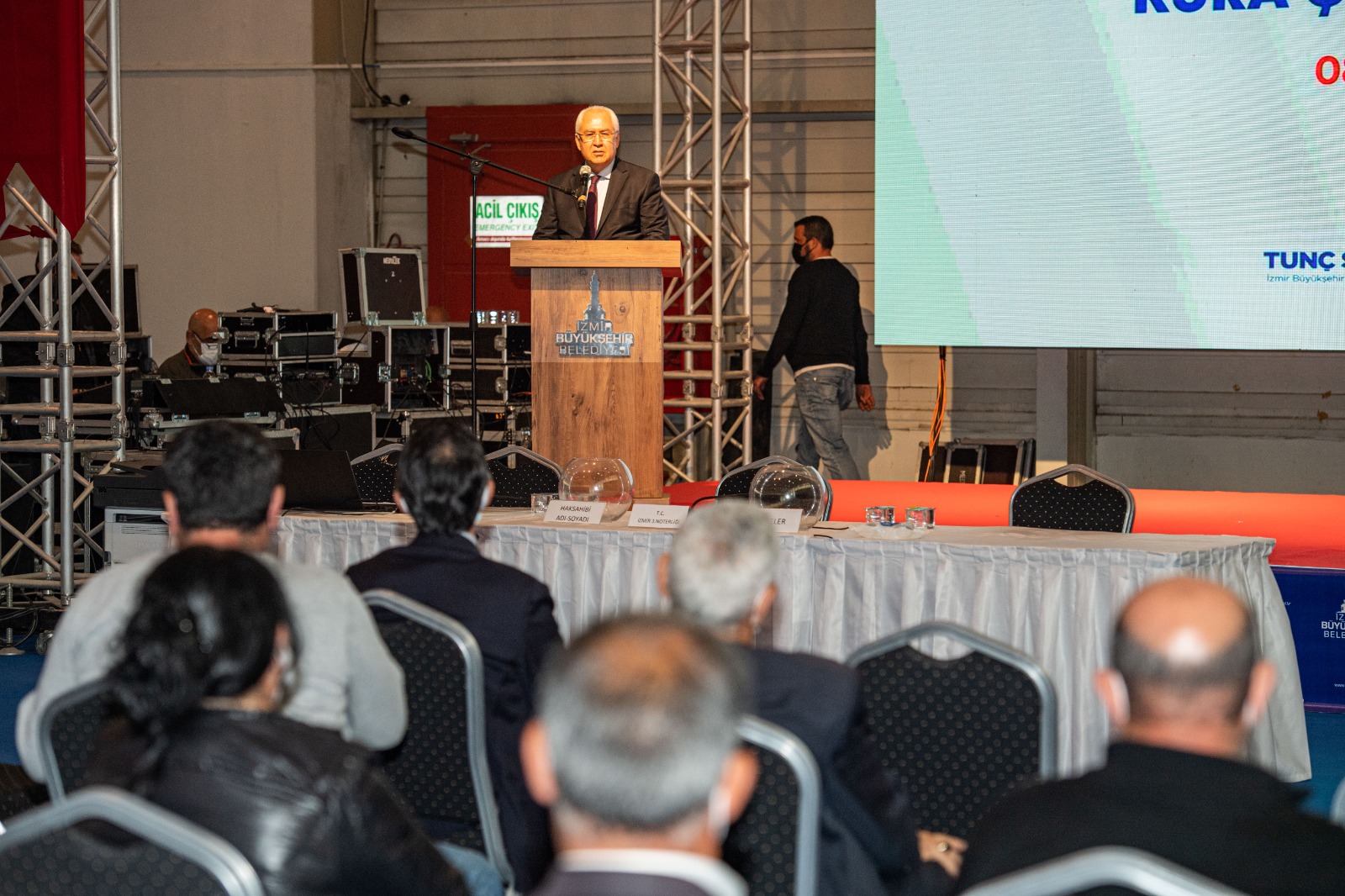 İzmir’de kentsel dönüşümü Türkiye’de olmayan özgünlükte bir yöntemle uyguladıklarını da vurgulayan Soyer, dönüşüm sürecinin “uzlaşma esaslı”, “yerinde ve adil”, “İzmir Büyükşehir Belediyesi’nin güvencesi ve garantörlüğü altında” olmak üzere üç temel ilke üzerinde yükseldiğini söyledi. Soyer, bu yaklaşım sayesinde vatandaşlar ile müteahhitlerin karşı karşıya gelmediğini, kentsel dönüşümün yapıldığı alanlarda ortaya çıkan değer artışının hak sahiplerine paylaştırıldığını aktardı. İzmir’de kentsel dönüşüm seferberliği başlattıklarını da sözlerine ekleyen Soyer, konuşmasını şöyle tamamladı: “Sadece iki yıl içinde, yıllardır dönüşüm bekleyen Ege Mahallesi’nde 418 milyon, Örnekköy’de 520 milyon lira, toplamda ise yaklaşık 1 milyar liralık ihale bedeli olan kentsel dönüşüm çalışmalarını başlattık. Karabağlar Uzundere Mahallesi’nde, Konak Ege ve Ballıkuyu Mahallesi’nde, Karşıyaka Örnekköy Mahallesi’nde, Gaziemir Aktepe ve Emrez Mahallesi’nde ve Çiğli Güzeltepe Mahallesi’nde toplamda 248 hektarlık alanda kentsel dönüşüm çalışmalarına hızla devam ediyoruz. Şimdiye kadar tüm bu kentsel dönüşüm alanlarında 2 bin 200 bağımsız birimin inşaatını başlattık. Hak sahiplerinden 345 bin metrekare tapu devri aldık. Yaklaşık 1000 bağımsız bölümün anahtar teslimini yaparak mülkiyet tapusu ile hak sahiplerine teslim ettik. İZBETON ile 1000 bağımsız birimin yapımı için protokol imzaladık. 1218 bağımsız birimin kat karşılığı ihalesini yaptık. Yaklaşık 4 bin 600 bağımsız bölümün de tüm uzlaşma, devir, tapu ve imar uygulamalarını tamamlayarak yapım ihalesine hazır hale getirdik. Bugün Uzundere Kentsel Dönüşüm proje alanımızda olduğu gibi İzmir’in 6 farklı bölgesinde, tıkır tıkır çalışmaya devam ediyoruz”