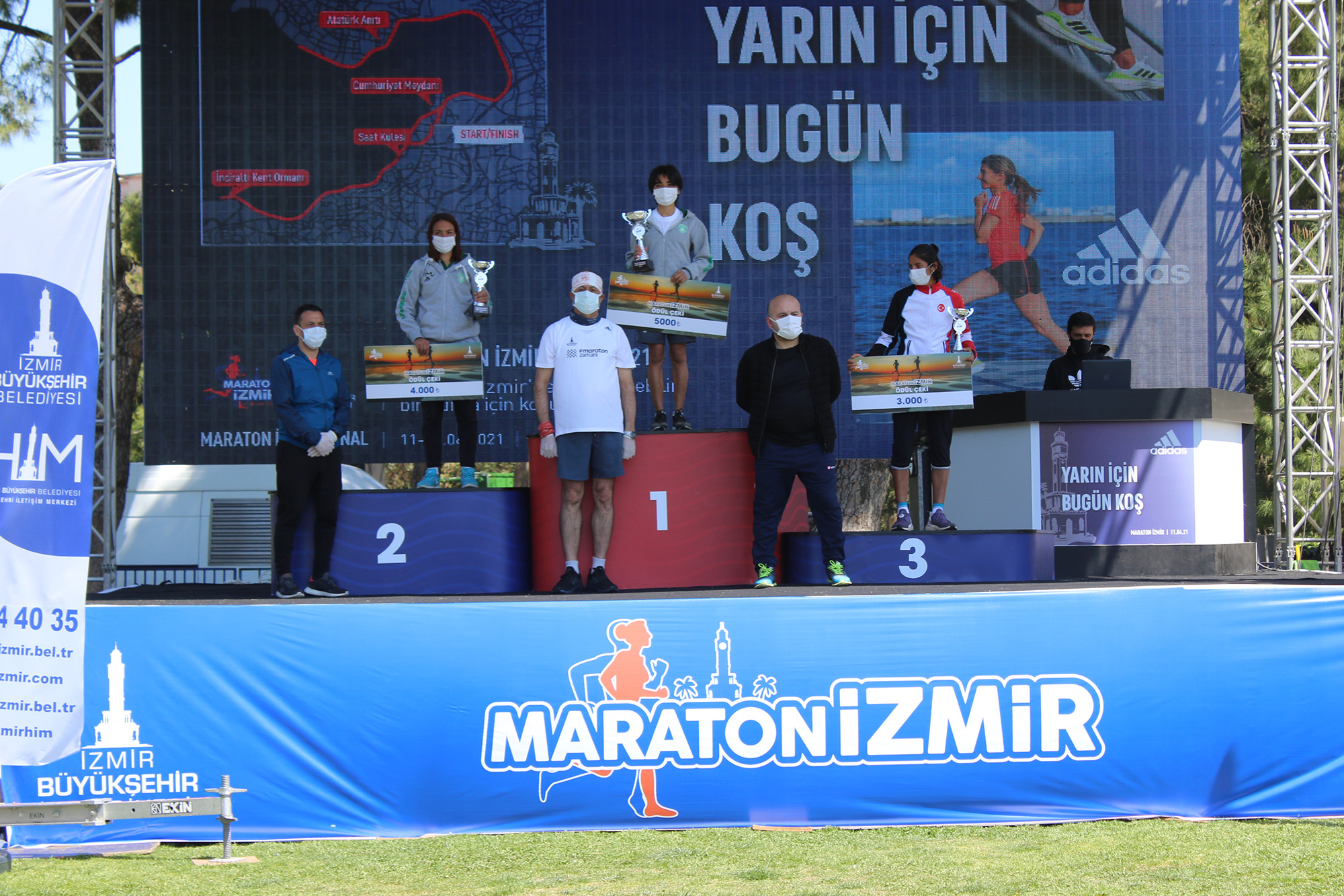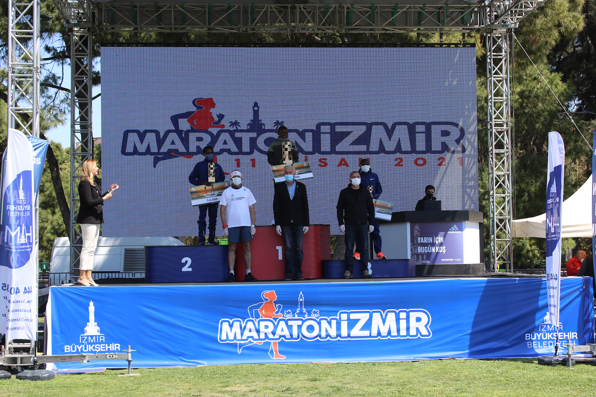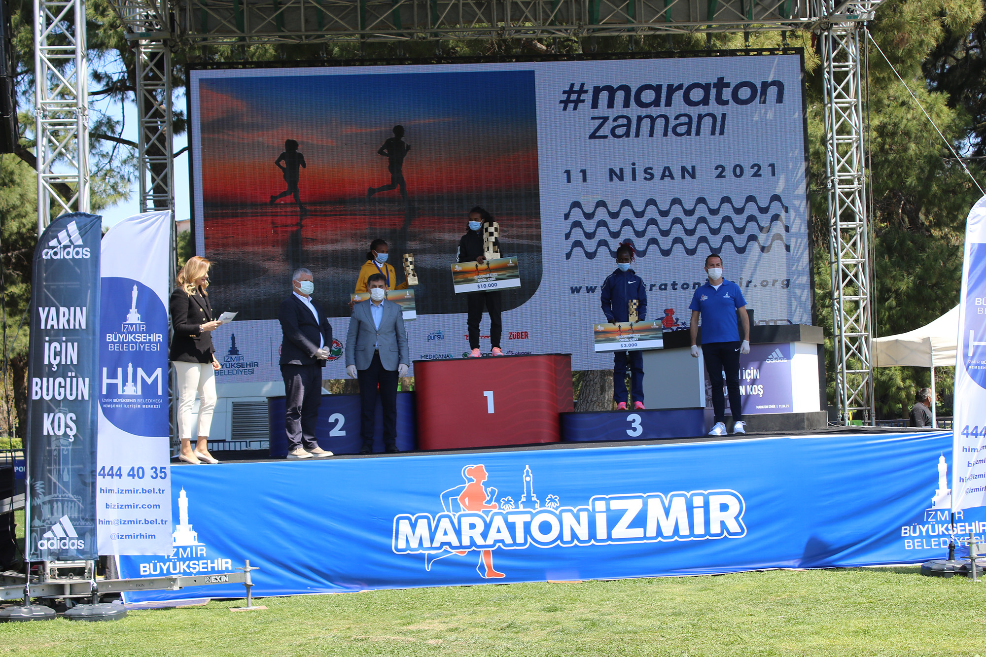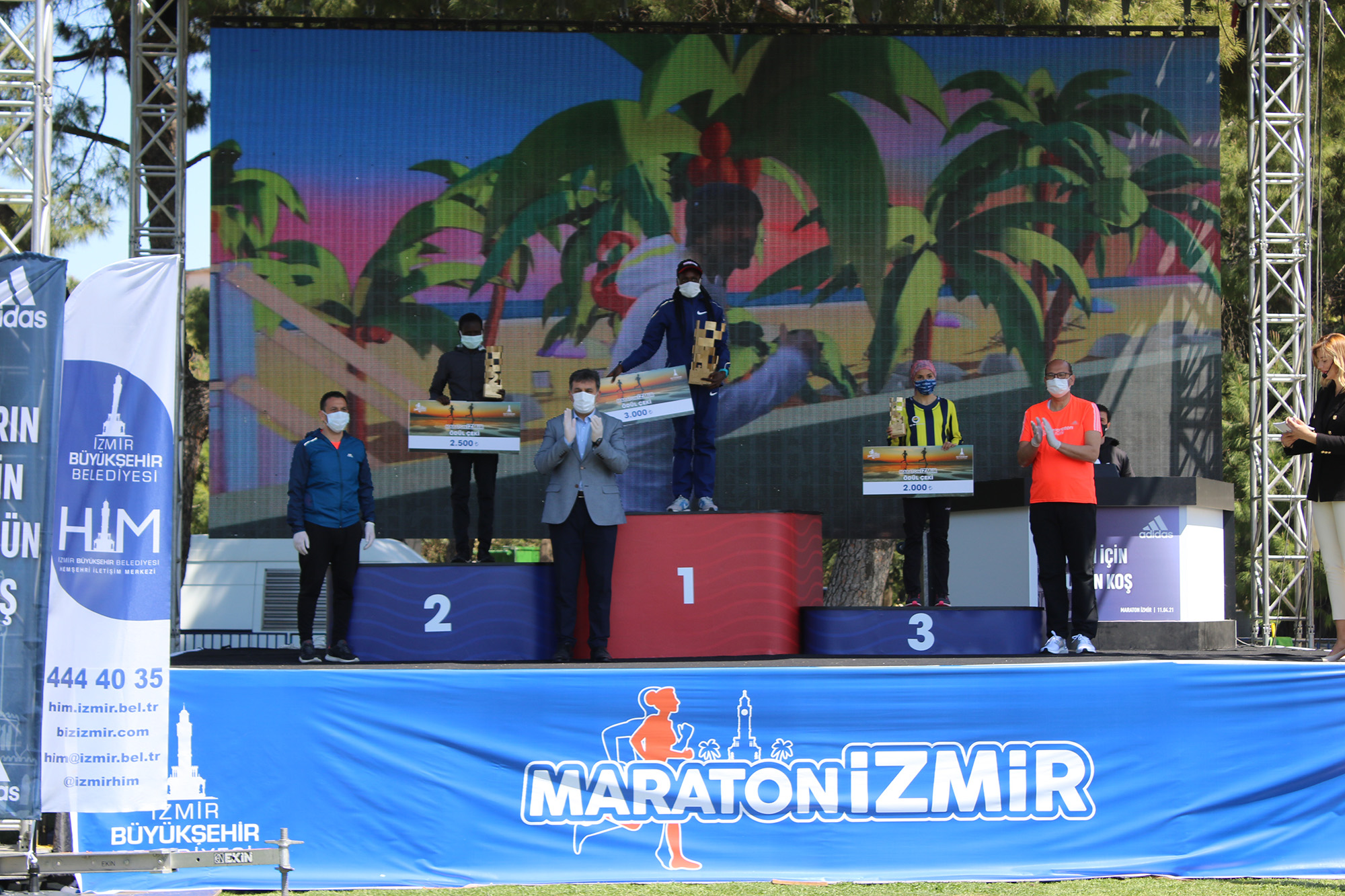 42 kilometre erkekler birincisi Getachew’e ödülünü Türkiye Atletizm Federasyonu Başkan Vekili Ali Aksu, kadınlar birincisi Kenyalı Betelhem Moges’e ise ödülünü İzmir Büyükşehir Belediyesi Başkan Vekili Mustafa Özuslu takdim etti.