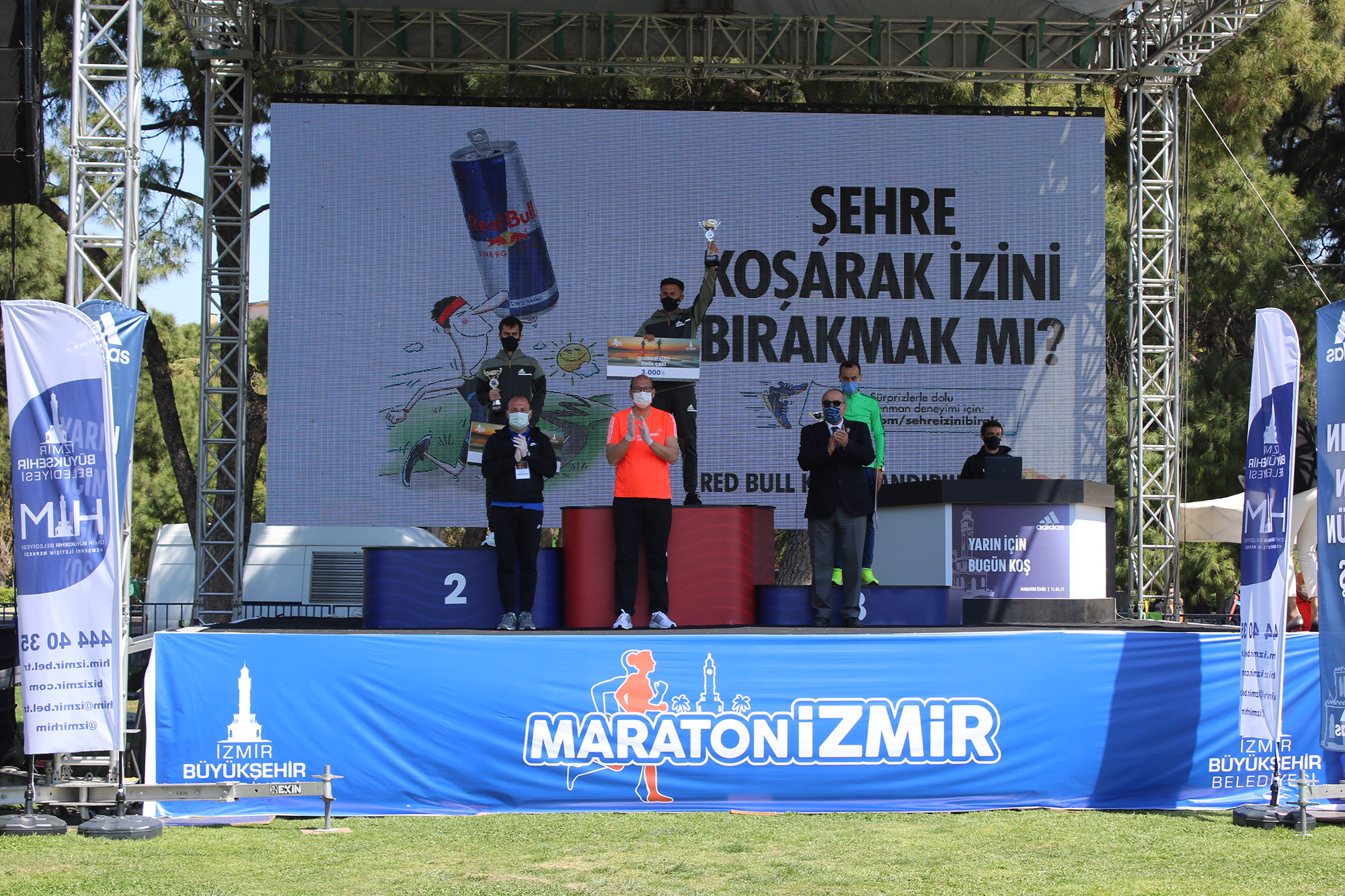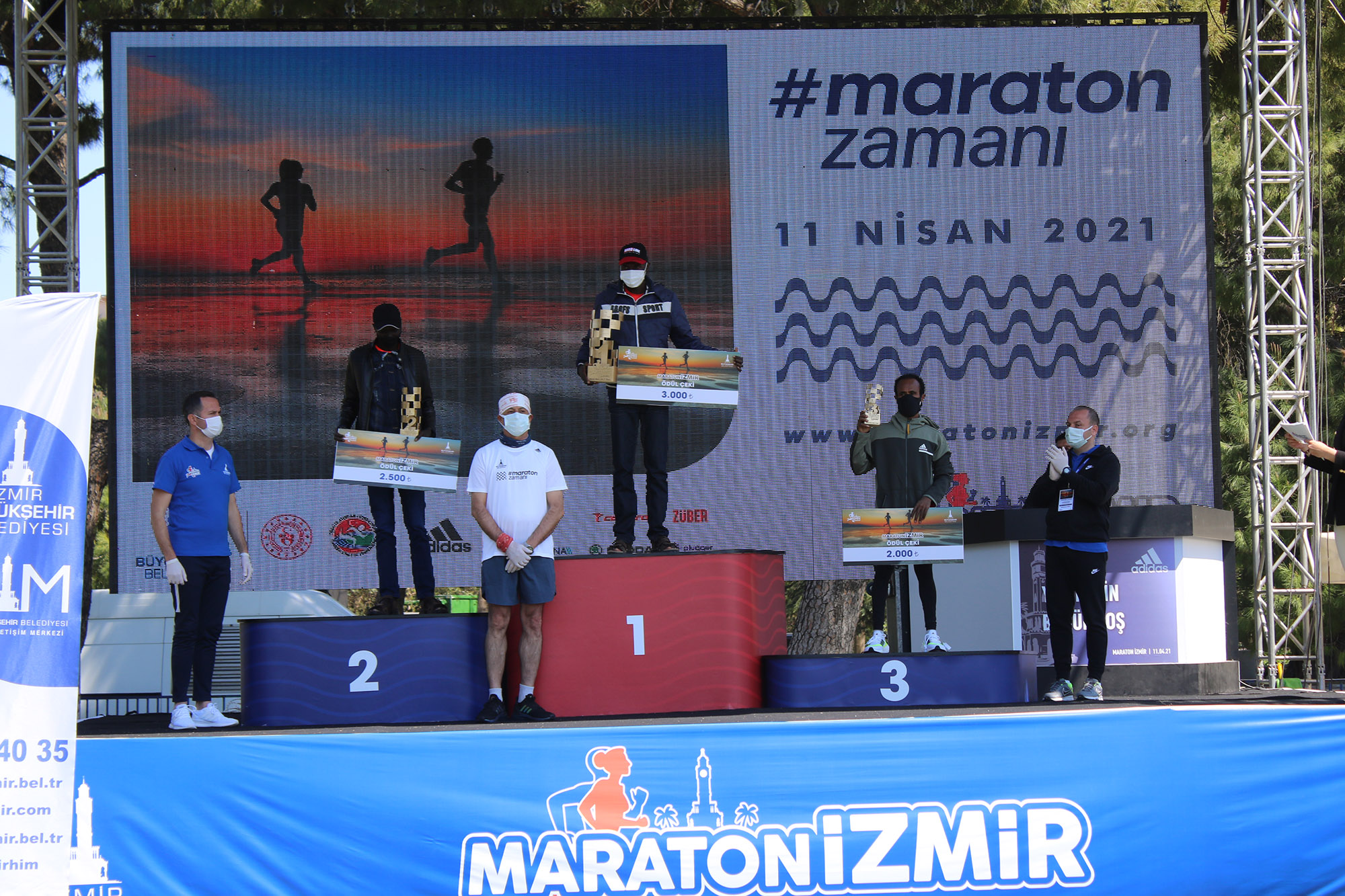 Türkiye'de bugüne kadar koşulan en iyi derecenin elde edildiği Uluslararası Maratonİzmir'in ikincisi, pandemi önlemleriyle yapıldı. Kültürpark'taki etkinlik alanına tek bir noktadan girişe izin verildi. Yarış alanına giren herkesin ateş ölçümleri yapıldı. Isınma için oluşturulan alanda yarışmacılar için 1.5 metrelik mesafeler ayrıldı. Maratonda, startlar dörder kişilik gruplar halinde, mesafe bırakılarak 5'er saniye arayla verildi. Her grubun arası 5 metre olarak tutuldu. Yarışmacıların maskelerini atmaları için, başlangıç noktası sonrasına çöp kutuları yerleştirildi. Bitiş noktasında ise koşuculara yeni maskeleri verildi.