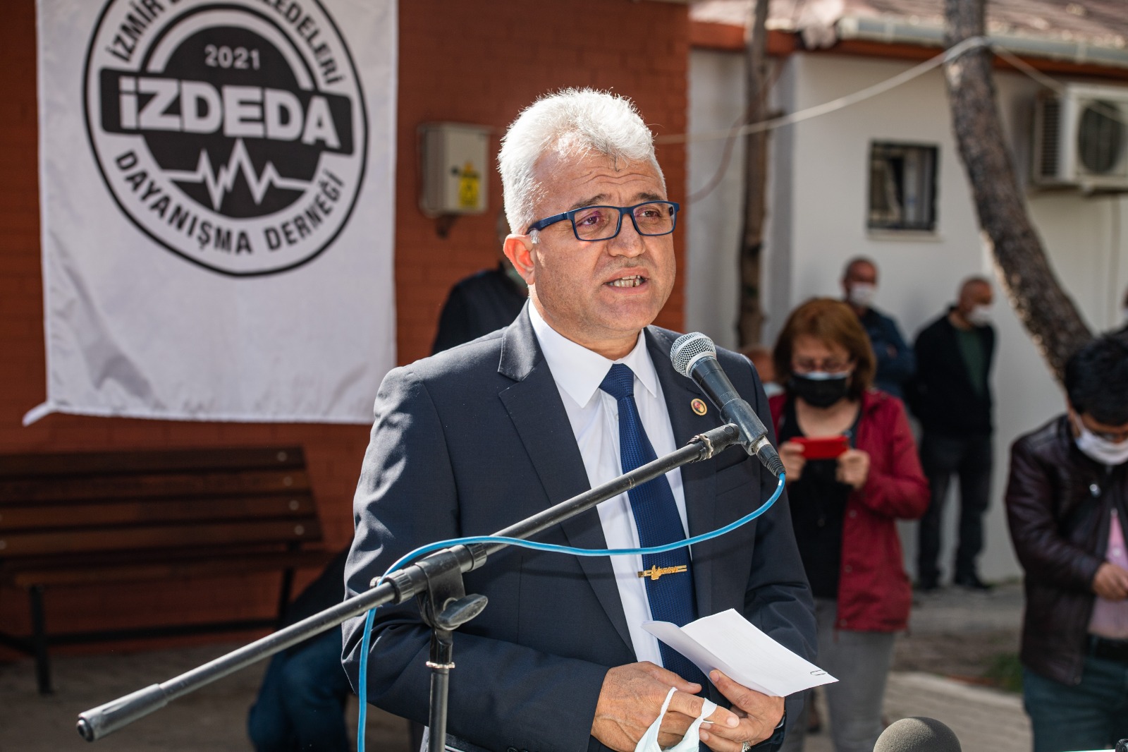 İzmir'de 30 Ekim depreminden etkilenenler İzmir Depremzedeleri Dayanışma Derneği (İZDEDA) çatısı altında örgütlendi. İzmir Büyükşehir Belediye Başkanı Tunç Soyer, dernek binası olarak kullanılması için Bayraklı Manavkuyu Mahallesi Muhtarlığı yanındaki İZSU binasını tahsis etti. Dernek binasının açılışı bugün sembolik bir törenle yapıldı. Törene İzmir Büyükşehir Belediye Başkanı Tunç Soyer, Bayraklı Belediye Başkanı Serdar Sandal, CHP İzmir Milletvekili Atila Sertel, CHP Bayraklı İlçe Başkanı Pınar Susmuş, AK Parti İlçe Başkanı Halil Polat, İzmir Büyükşehir Belediyesi Genel Sekreteri Dr. Buğra Gökçe, İZDEDA Başkanı Haydar Özkan ile depremzedeler katıldı.