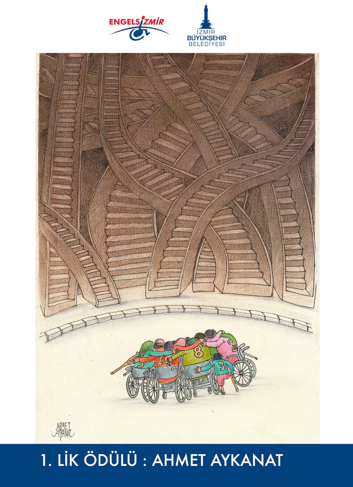 Engellilerin sorunlarına çözüm üretmek amacıyla bir dizi çalışma yürüten İzmir Büyükşehir Belediyesi’nin düzenlediği "4. Uluslararası Engelsizmir Kongresi" kapsamındaki “4. Engelsizmir Ulusal Karikatür Yarışması” sonuçlandı. “Yetişkinler” kategorisinde birinciliği Ahmet Aykanat, “Gençler” kategorisinde ise Efe Şahlanan ve H. İbrahim Satır aldı.
