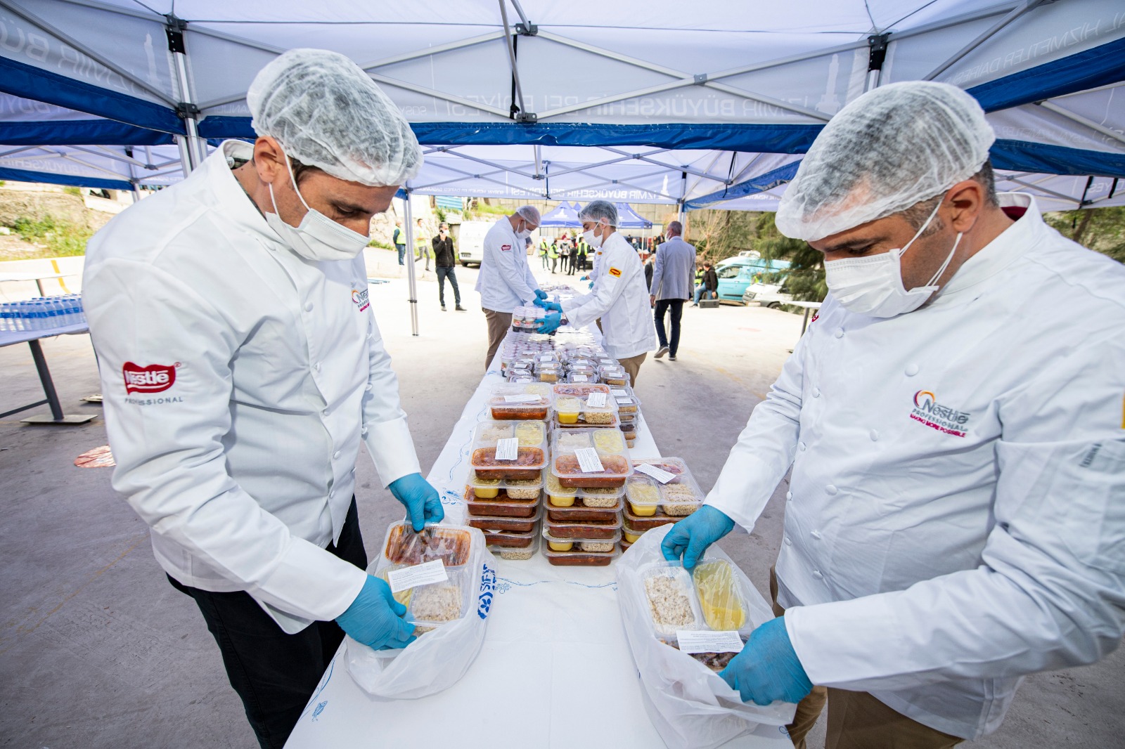 Ramazan ayı boyunca 400 bin kişilik iftar yemeği dağıtmayı planlayan İzmir Büyükşehir Belediyesi, ihtiyaç sahiplerinin iftar yemeği paketleri ve gıda kolilerini kapılarına kadar ulaştırmayı sürdürüyor. İzmirli yurttaşlar tarafından Bizİzmir dijital platformları ve Halkın Bakkalı web sitesi üzerinden satın alınan yemek ve gıda paketleri de Büyükşehir ekipleri tarafından evlere teslim ediliyor. Başkan Tunç Soyer’in dayanışma çağrısı üzerine İzmirli yurttaşlar bir haftada 10 bin kişilik iftar yemeği ve iki bin gıda paketi satın alarak dayanışmaya katkı sağladı.
