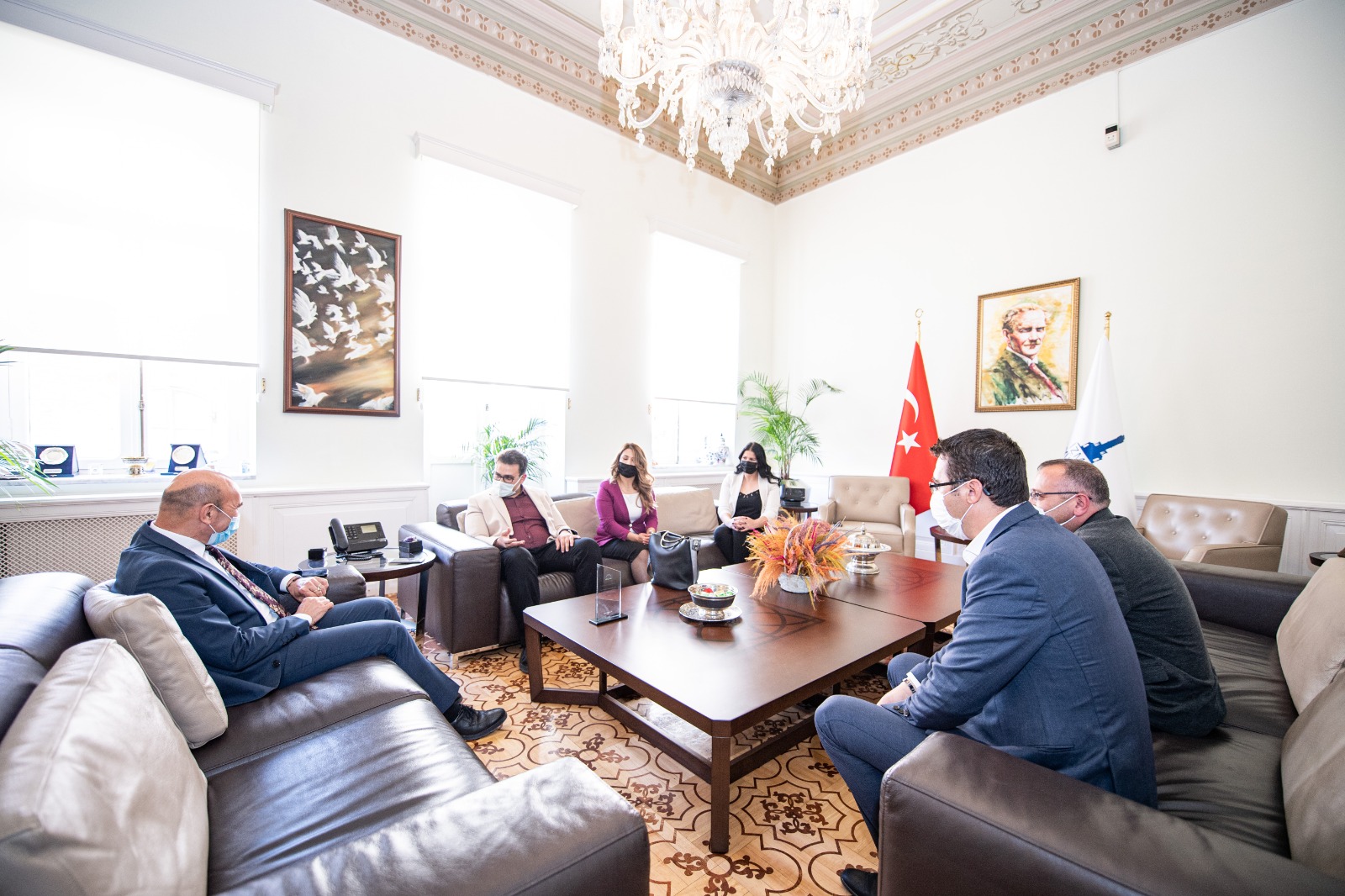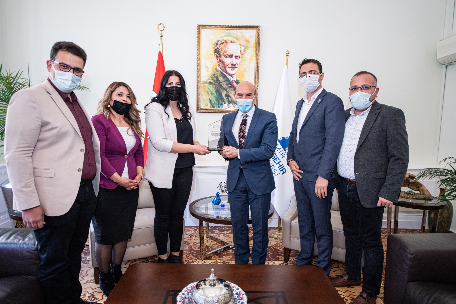 Kiraz Ortaokulu Müdürü Meltem Aytekin, Müdür Yardımcılarından Yüksel Öztürk, Ayşe Mehtap Mavi ile Okul Aile Birliği Başkanı Onur Çavuşoğlu, Okul Aile Birliği Başkan Yardımcısı aynı zamanda Kiraz Yerel Hizmetler Koordinatörü Ümit Kazak, İzmir Büyükşehir Belediye Başkanı Tunç Soyer'i ziyaret etti. Okul Müdürü Meltem Aytekin, okulun kapı ve pencerelerini yenilenmesini, bahçe düzeninin yapılmasını ve okul çevresindeki yolların asfaltlanmasını sağlayan Başkan Tunç Soyer'e teşekkür etti.
