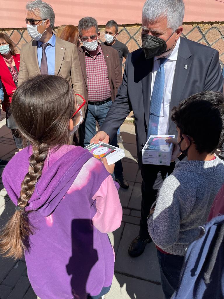 Bingöl’ün Kiğı ilçesinden İzmir Büyükşehir Belediye Başkanı Tunç Soyer’e mektup yazarak özellikle eğitim araçları konusunda karşılaştıkları eksiklerin giderilmesi için destek isteyen çocukların yüzü 23 Nisan Ulusal Egemenlik ve Çocuk Bayramı’nda güldü. Başkan Soyer’in Bingöllü çocuklara yolladığı hediyeleri İzmir Büyükşehir Belediyesi Başkanvekili Mustafa Özuslu ve İzmir Büyükşehir Belediyesi Sosyal Hizmetler Dairesi Başkanı Ulaş Aydın teslim etti.