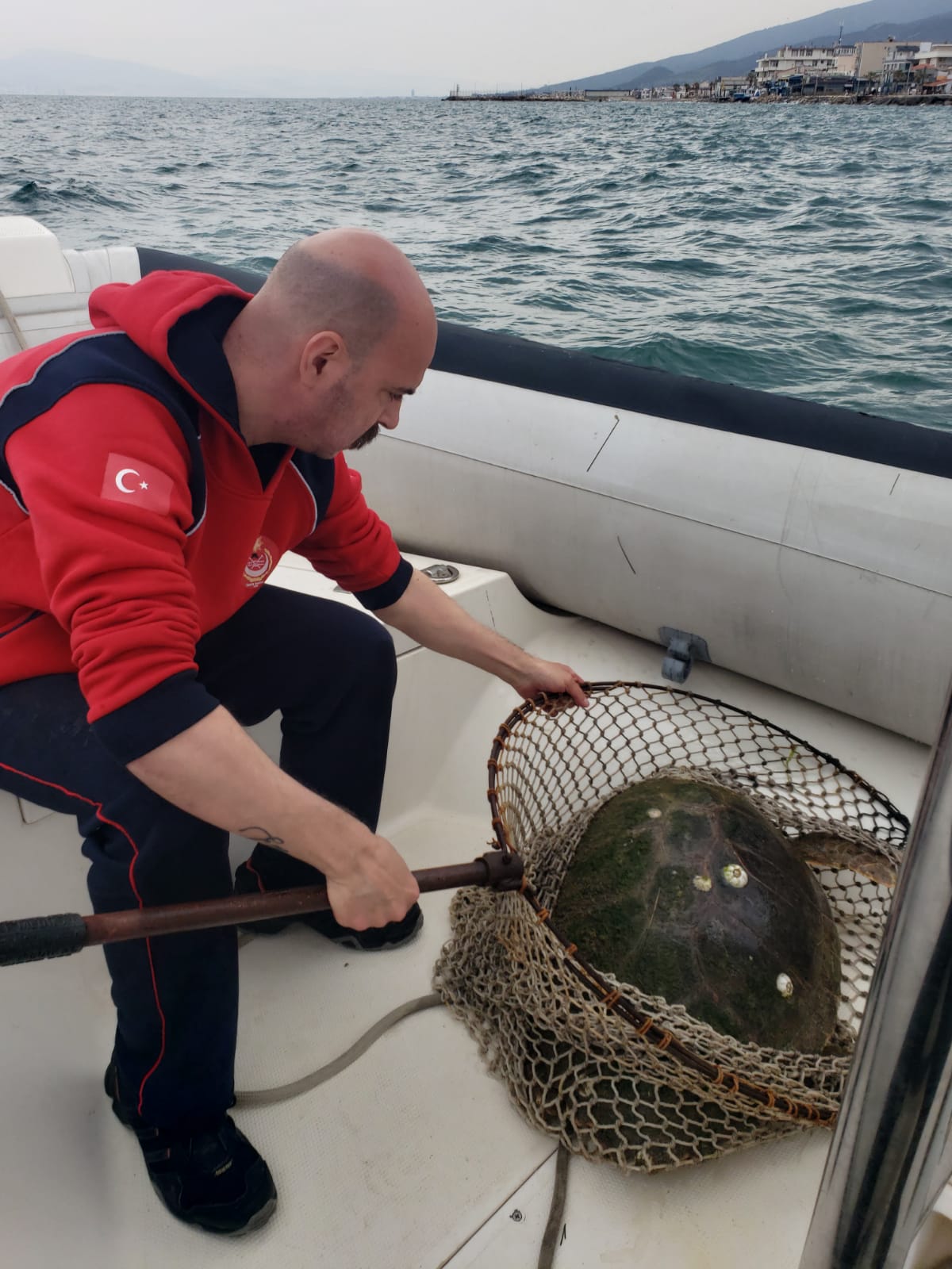 Körfez’deki yaralı deniz kaplumbağasını kurtarmak için İzmir Büyükşehir Belediyesi ekipleri adeta zamanla yarıştı. Saat 15.21’de 112 çağrı merkezine yapılan Güzelbahçe Balıkçı Barınağı açığında yaralı halde bir Caretta caretta türü deniz kaplumbağası bulunduğu ihbarı üzerine İtfaiye Dairesi Başkanlığı Arama Kurtarma ve Afet İşleri Şube Müdürlüğü’ne bağlı Su altı ve Su Üstü Arama Kurtarma ekibinden 3 dalgıç harekete geçti. Ekip ihbardan sadece 5 dakika sonra 15.26’da yaralı kaplumbağanın bulunduğu noktaya ulaştı. Kurtarma ağıyla bota çıkarılan ve hayati tehlikesinin bulunmadığı anlaşılan Caretta caretta türü deniz kaplumbağası ilk müdahalenin yapılması için İzmir Doğal Yaşam Parkı yetkililerine teslim edildi.