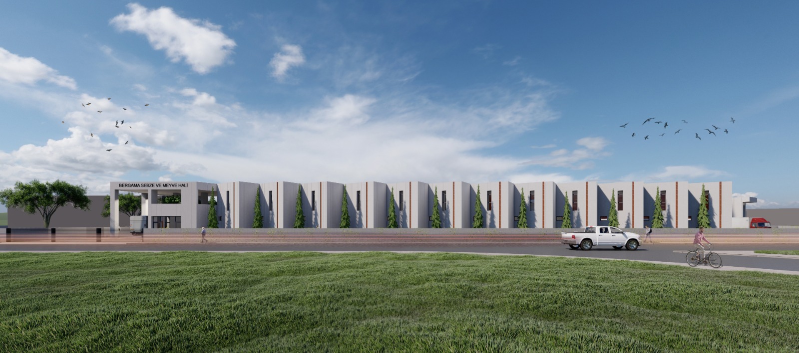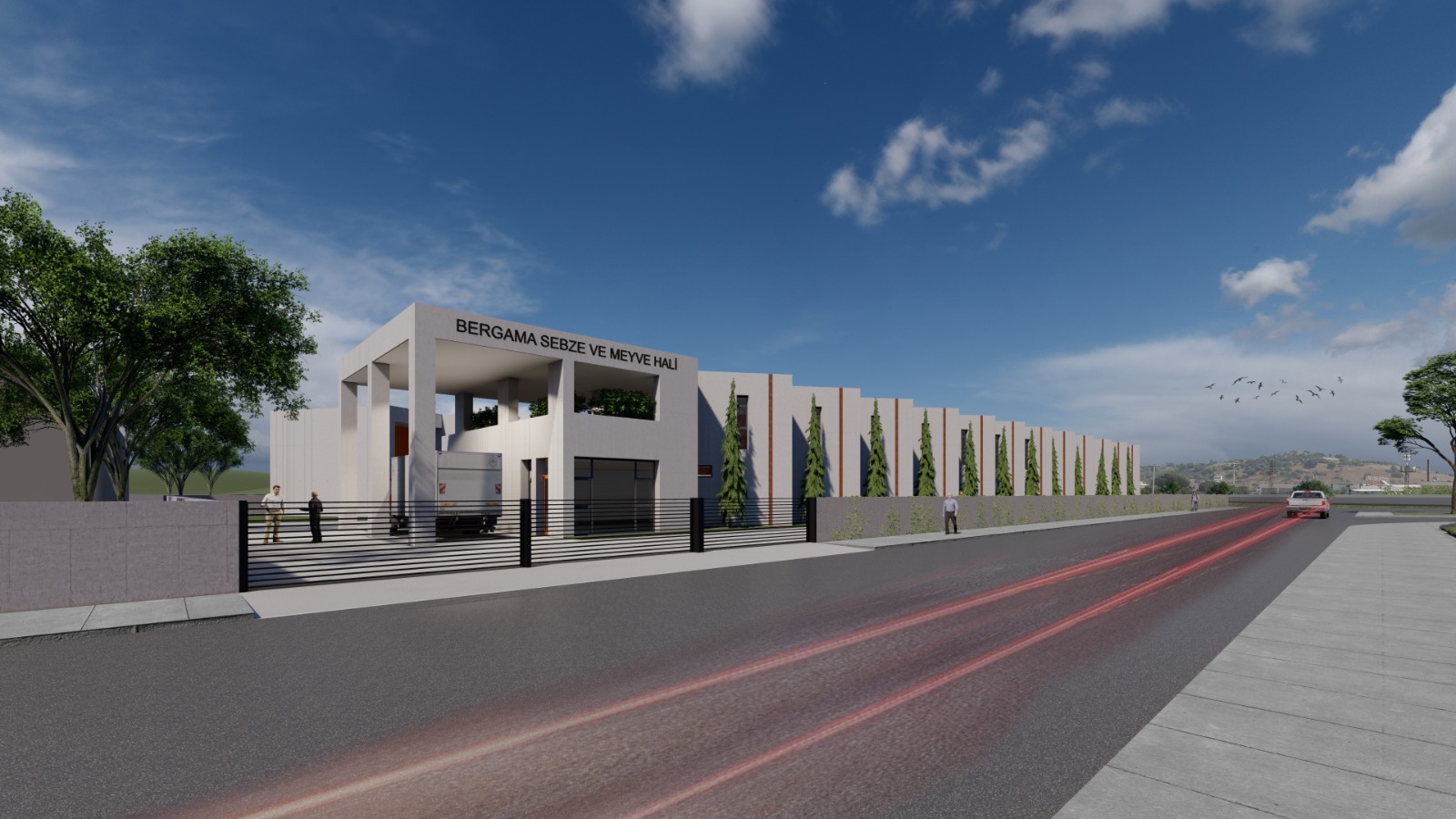 Taş kaplama cephesi, yeşil alan düzenlemeleri ve modern mimarisi ile dikkat çeken Bergama Sebze Meyve Hali’nin tamamlanmasıyla aynı zamanda ilçedeki tarımsal üretimin tüketiciye sağlıklı ve sürdürülebilir bir biçimde ulaşması sağlanacak, bölgedeki tarımsal faaliyetler güçlenecek.