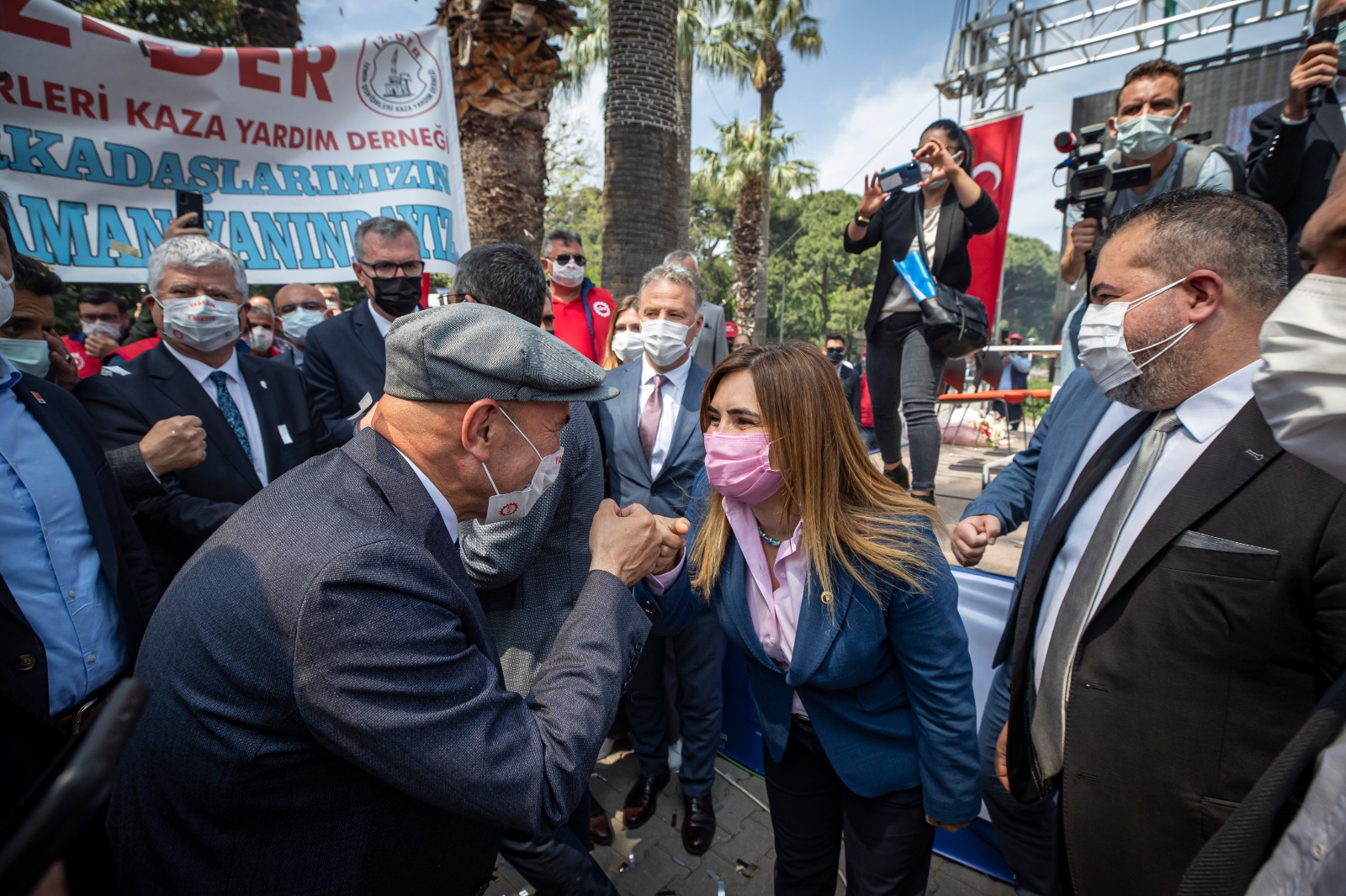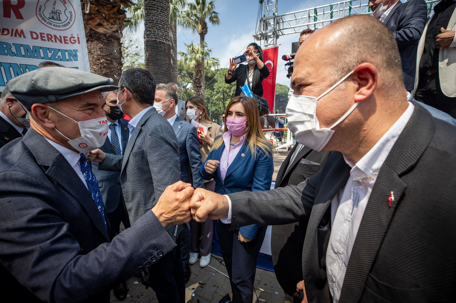 Siyasetin artık yukarıdan aşağı değil, aşağıdan yukarı şekillendiğini ifade eden Soyer, “Sizin yarattığınız dip dalga, tüm siyasi aktörleri, siyasal partileri değiştiriyor. Bu ne demek? Kibrin, küstahlığın, kutuplaştırmanın geride kaldığı bir Türkiye demek. Kucaklayıcı, samimi, emek ve demokrasiden yana, şeffaf, hesap verebilir bir yönetim demek. Yani başka bir dünya demek.22 Temmuz 2020’de, hepinizin hatırlayacağı gibi, Kanun Hükmünde Kararname nedeniyle mağdur olan çalışanlarımızın tüm sosyal haklarından eksiksiz yararlanabildiği yeni bir sisteme geçmiştik. Bu kararımızla, Kanun Hükmünde Kararname kapsamındaki işçilerimizi, toplu sözleşmeden faydalandıran ilk büyükşehir belediyesi olduk. Bununla gurur duyuyorum.31 Temmuz 2019’da, göreve geldikten sadece birkaç ay sonra, adaletsizliklere karşı sizlerle birlikte mücadele etmeye söz vermiştim. Yaşadığımız adaletsizliklerle, belediyemizden başlamak üzere mücadele edeceğim demiştim. Önümüzdeki dönemde İzmir Büyükşehir Belediyesi’nde eşit işe eşit ücret verilecek demiştim. Çok şükür. Bu noktaya artık çok yaklaştık. Büyükşehir belediyesinin işçileri, hangi belediye şirketinde çalışırsa çalışsın, bu dönemin sonunda aynı düzeyde maaş alacak. Eşit işe farklı maaş adaletsizliği tarihe karışacak. Bu bizim ortak başarımızdır. Siz ve biz olmayı bir kenara bıraktık. Tek yürek olduk. Sizlerle birlikte oluşturduğumuz bu büyük dayanışma ile iftihar ediyorum. 1 Mayıs yaklaşıyor! İşçinin, emekçinin bu büyük bayramı yaklaşırken, hepinizi kardeşlikle ve muhabbetle kucaklıyorum. Mazlumların, ezilenlerin, alın teri dökenlerin ve daha güzel bir dünya için tüm haksızlıklarla mücadele edenlerin bayramı, 1 Mayıs İşçi Bayramımız kutlu olsun” dedi.