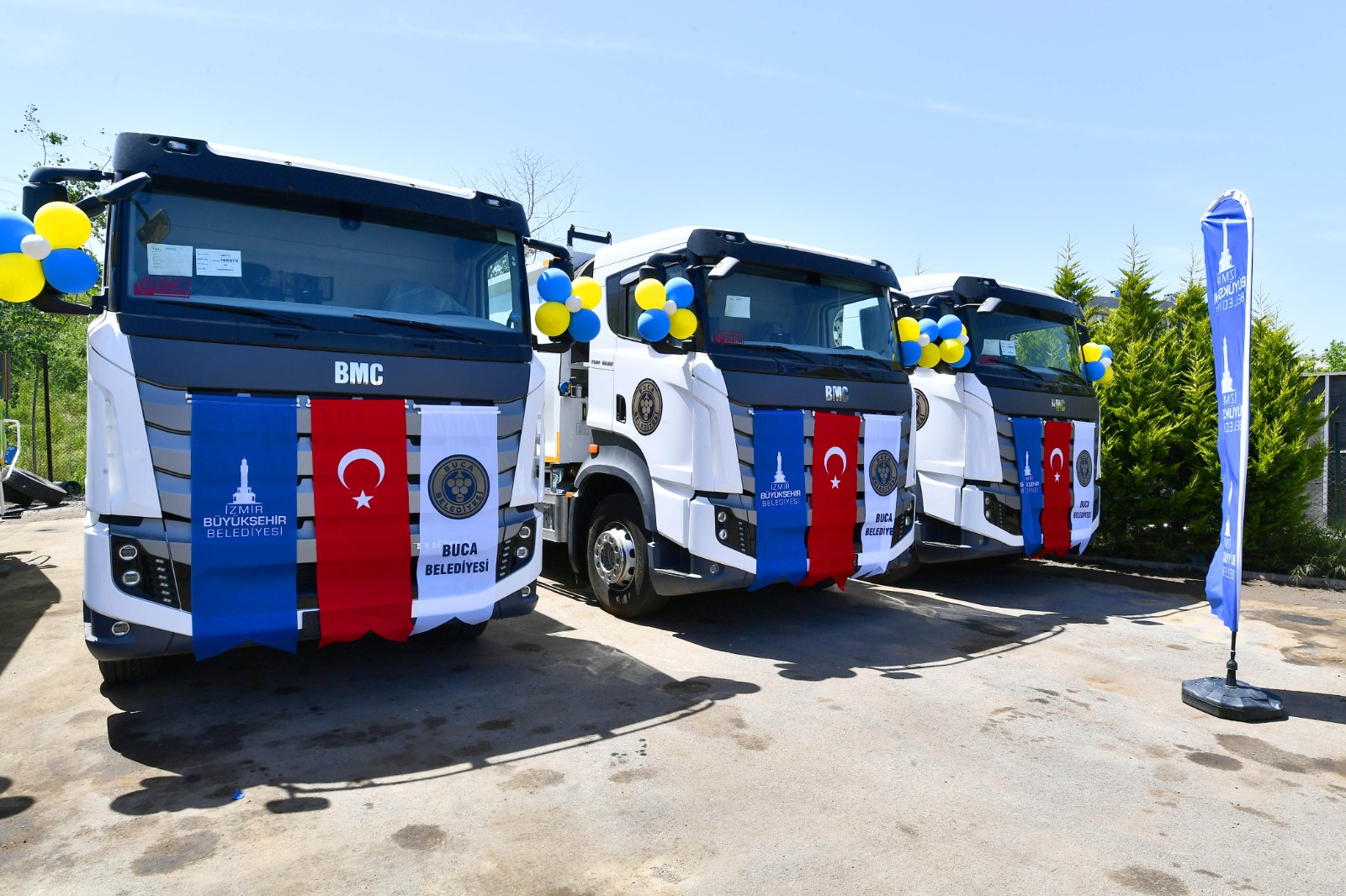 İzmir Büyükşehir Belediyesi, “temiz bir kent” hedefi ile ilçe belediyelerine evsel atıkları hızlı ve sağlıklı bir şekilde toplaması için araç desteği veriyor. Son olarak 10 milyon 780 bin liralık maliyetle satın alınan son teknoloji 15 çöp kamyonu Buca’da hizmete alındı. İzmir Büyükşehir Belediye Başkanı Tunç Soyer, araçların anahtarını Buca Belediye Başkanı Erhan Kılıç’a teslim etti. Anahtar teslimine CHP İzmir Milletvekilleri Bedri Serter ile Sevda Erdan Kılıç ve CHP İl Başkanı Deniz Yücel de katıldı.