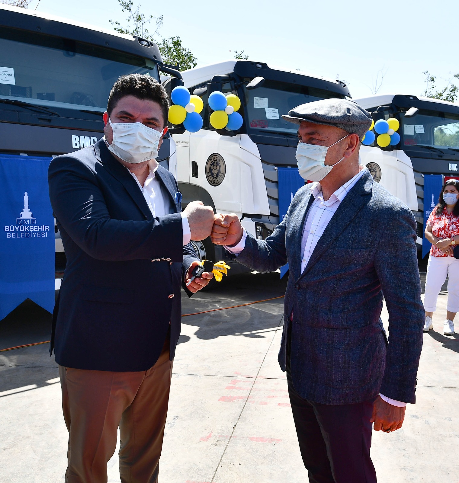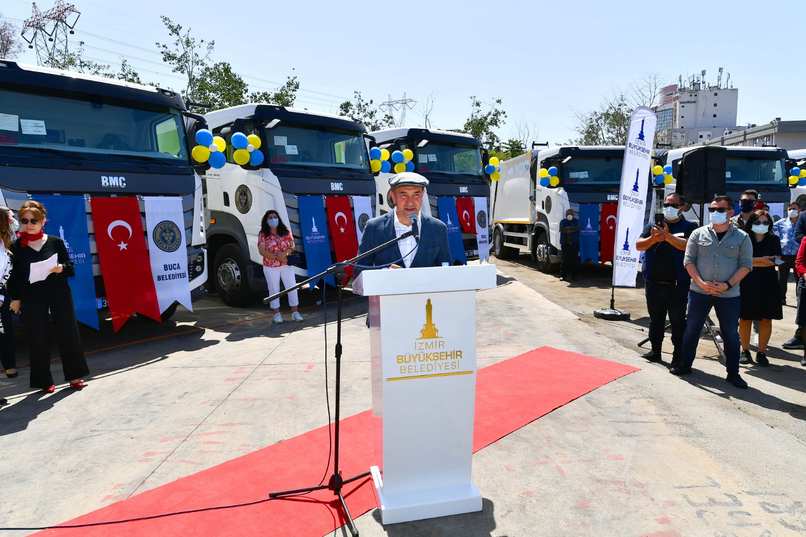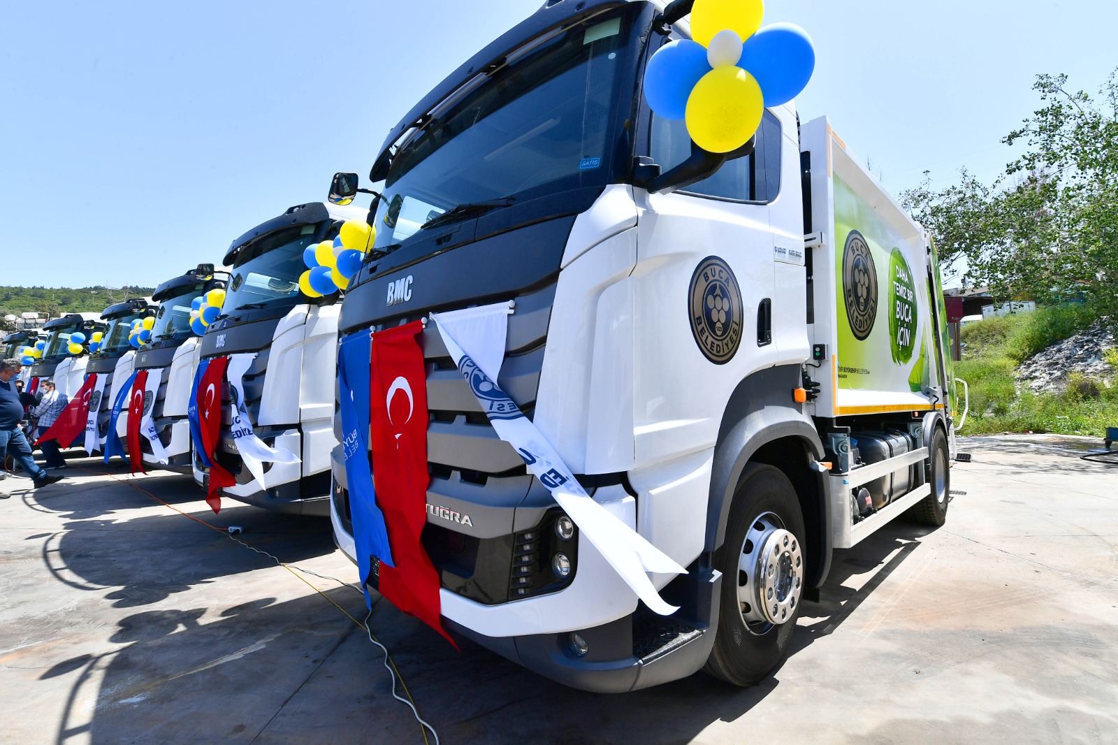 Konuşmaların ardından İzmir Büyükşehir Belediye Başkanı Tunç Soyer, Buca Belediye Başkanı Erhan Kılıç’ın kullandığı çöp kamyonlarından birine binerek araçla kısa bir tur attı.