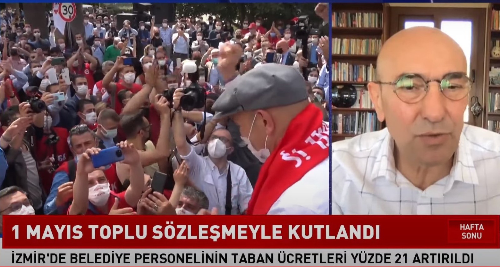 İzmir Büyükşehir Belediye Başkanı Tunç Soyer, İZELMAN ile DİSK Genel İş Sendikası arasında imzalanan toplu sözleşmenin ayrıntılarını değerlendirmek ve 1 Mayıs Emek ve Dayanışma Günü’ne ilişkin düşüncelerini paylaşmak üzere KRT Televizyonu’nun canlı yayınına konuk oldu. Çalışanlara ücret, sosyal haklar ve eşitlik düzeyinde çok önemli kazanımlar sağlayan bir sözleşmenin imzalandığını belirten Başkan Soyer, “Biz beraber çalışıyoruz, bu şehre birlikte hizmet ediyoruz. Yasanın bizi konumlandırdığı noktalarda büyük bir tuhaflık var. Ben kendimi ne işveren, ne patron olarak hissediyorum. Hep birlikte İzmir’e hizmet etmenin onurunu yaşıyoruz. Yaptığımız sözleşme alın teri döken kardeşlerimin mümkün olduğu kadar haklarını koruyacak bir sözleşmedir. Biz İzmir’in parasını İzmir’e aktarıyoruz. Çalışan kardeşlerim de o aynı zamanda hizmetlerin muhatabı. Onlar ne kadar mutlu olursa biz de kendimizi o derece mutlu hissederiz” diye konuştu.