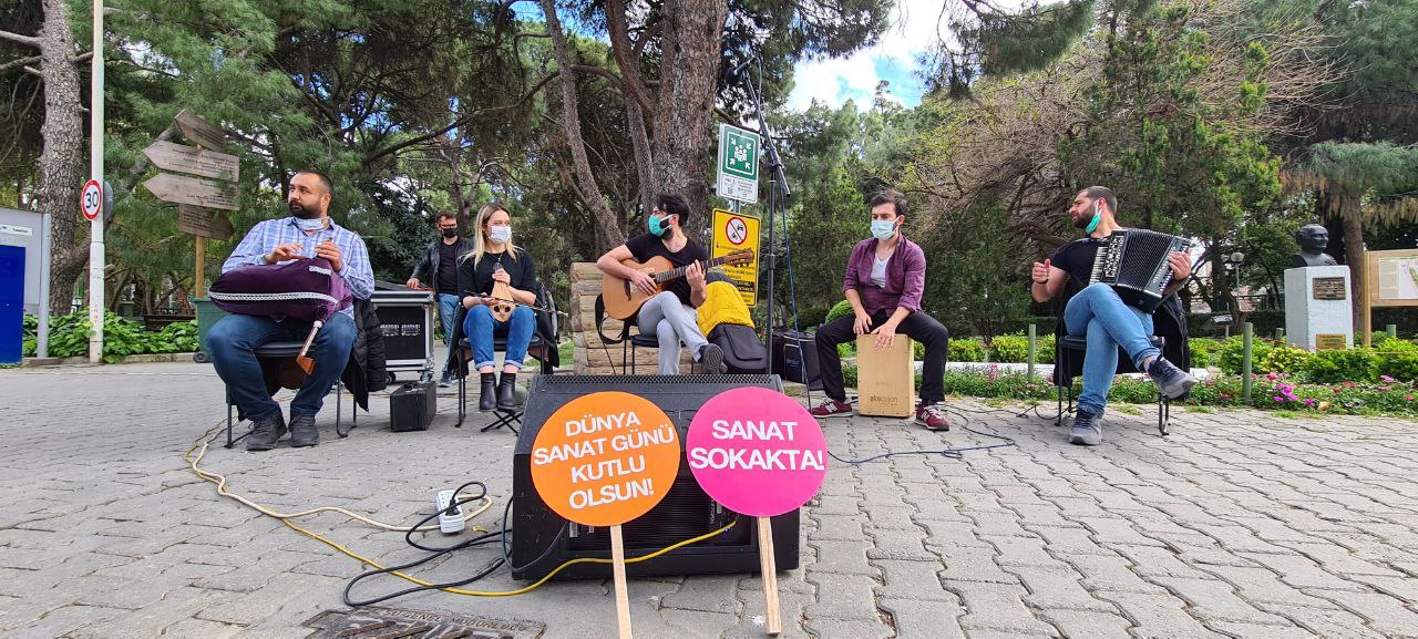 o 15 Nisan Dünya Sanat Günü’nde İzmir Müzisyenler Derneği, Müzisyenler ve Sahne Sanatçıları Derneği ve (Müzik-Sen) Müzik ve Sahne Sanatçıları Sendikası sanatçıları görev aldı. Projeyle toplam 80 müzisyene 1000’er TL destek sağlandı.