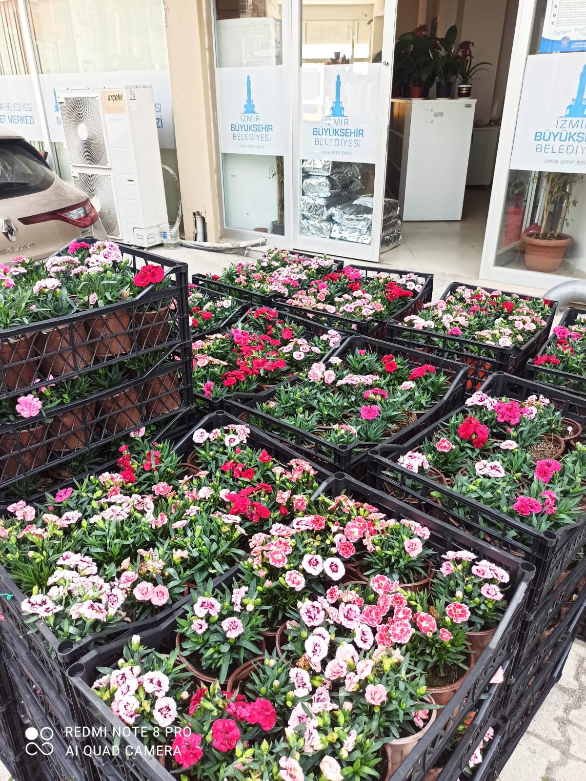 İzmir Büyükşehir Belediyesi anneler gününde anneleri ve kadın muhtarları sevindiriyor. Zor günler yaşayan çiçek üreticilerine destek olmak için kooperatiflerden alınan 15 bin saksı karanfil ve dalya çiçeğinin dağıtımı başladı.