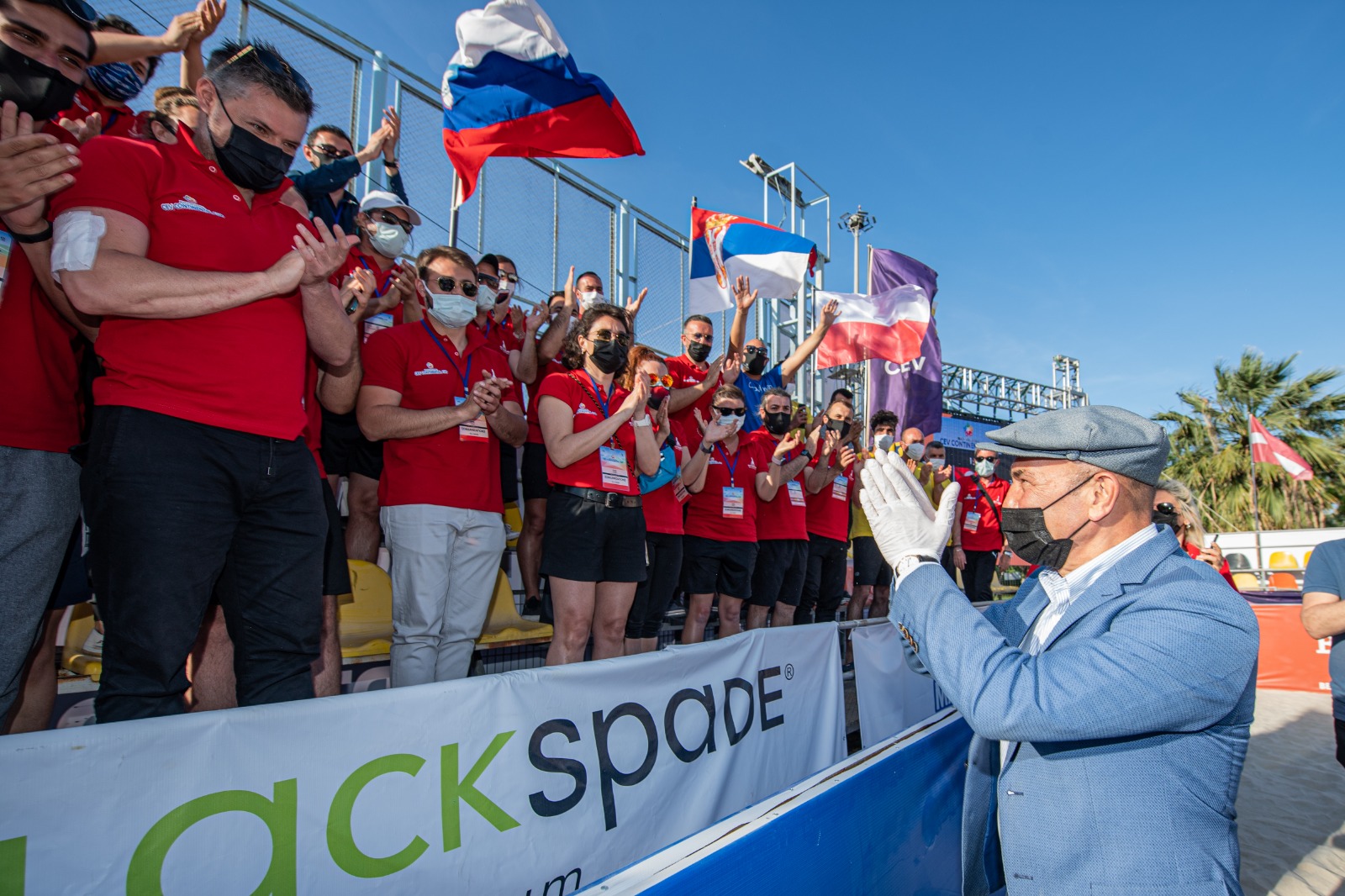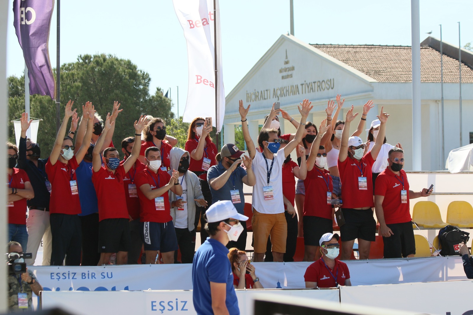 Safa Urlu-Selçuk Şekerci, Arturs Rinkevics-Ardis Bedritis maçını izleyen İzmir Büyükşehir Belediyesi Başkanı Tunç Soyer, final maçlarının ardından düzenlenen ödül töreninde milli takımımızın şampiyonluk kupasını TVF Başkan Vekili Alper Sedat Aslandaş ile birlikte verdi.