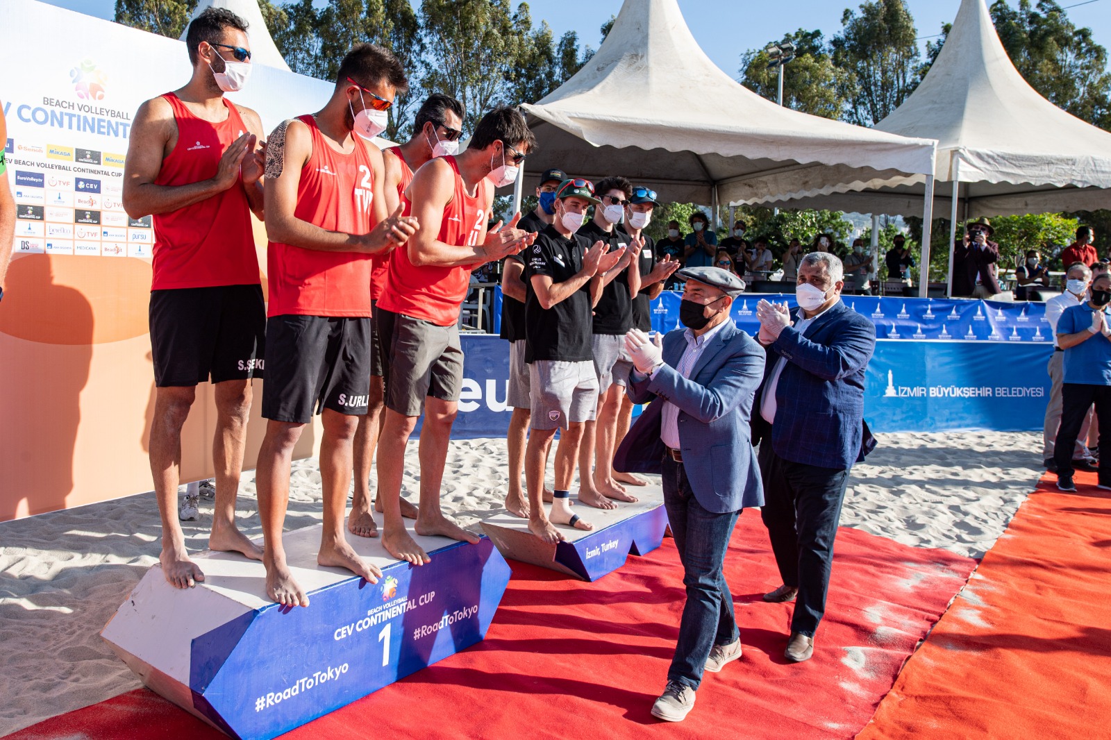İzmir’de düzenlenen CEV Continental Cup Plaj Voleybolu Turnuvası’nda Türkiye Erkek Milli Takımı, final maçında Letonya’yı yenerek şampiyonluğa ulaştı. Milli takımımız şampiyonluk kupasını İzmir Büyükşehir Belediye Başkanı Tunç Soyer’in elinden aldı.