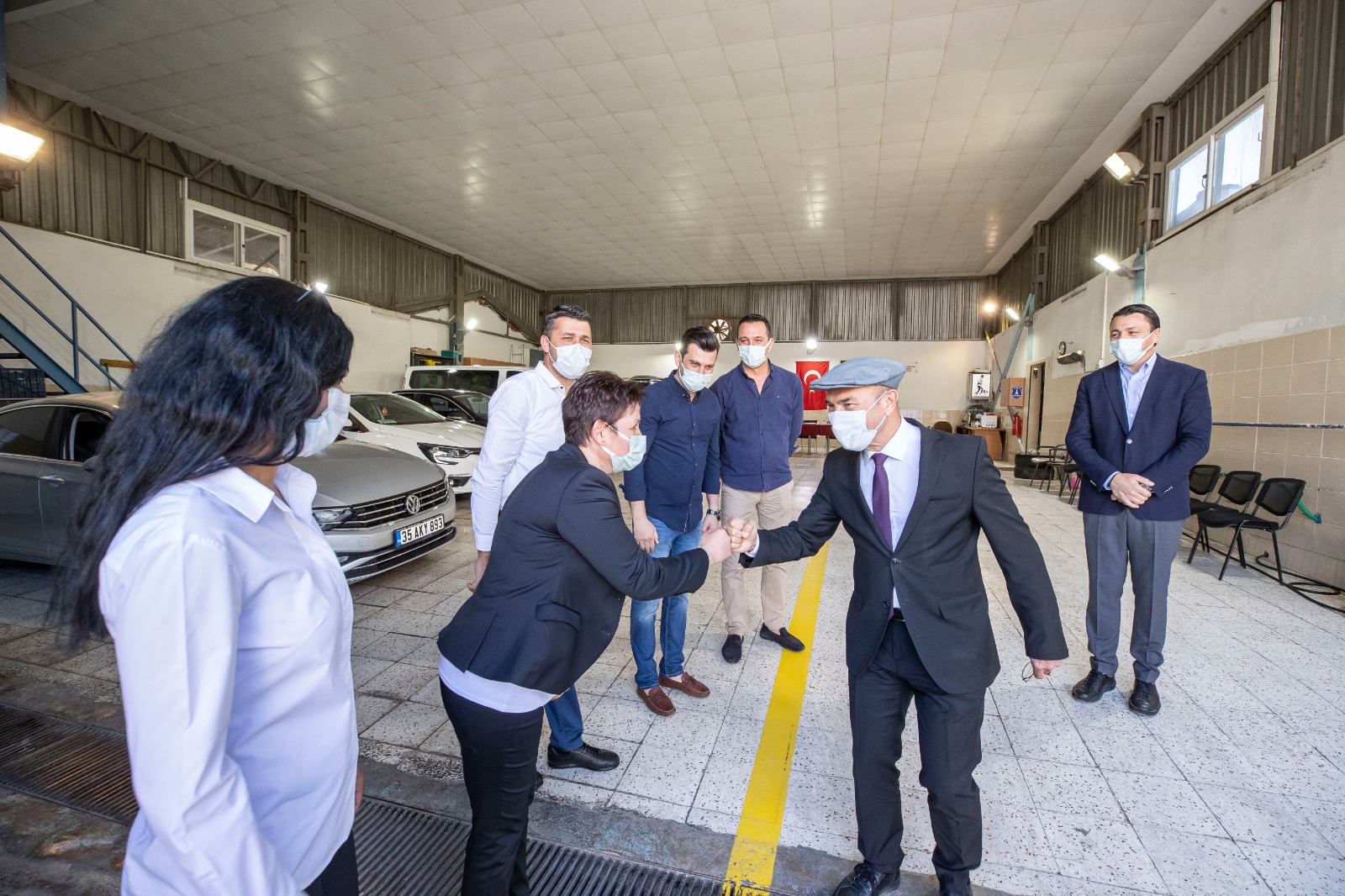 Trafik Hizmetleri Şube Müdürlüğü'nde personelle bayramlaşan Soyer, ardından Tesisler Bakım Onarım Şube Müdürlüğü'ne geçti. Örnekköy Temizlik Şantiyesi'nde personele seslenen Başkan Soyer, “İzmir'e kadın eli değsin derken, hem temizlik hizmetlerinde, park bahçelerde, şoför olarak otobüslerde hep kadın istihdam etmeye çalışıyoruz. Çünkü ben kadınlara daha çok güveniyorum. Sizlerin hem anneliğine güveniyorum, hem bu şehre yapacaklarınıza inanıyorum” diye konuştu.