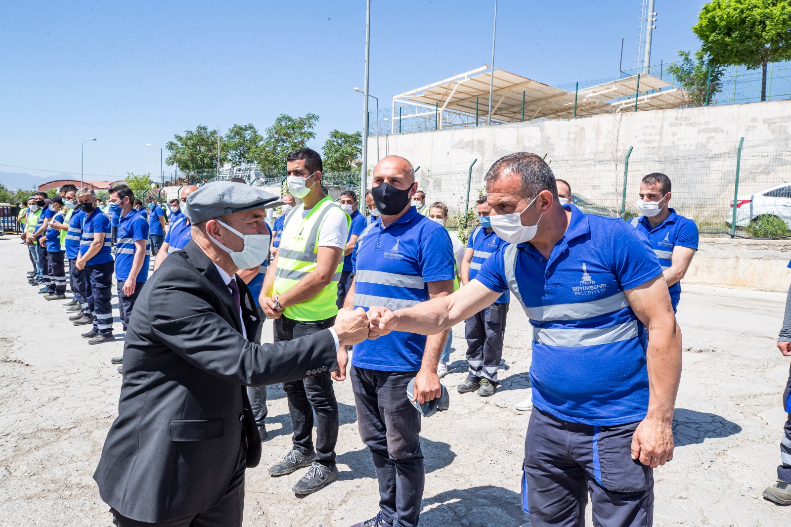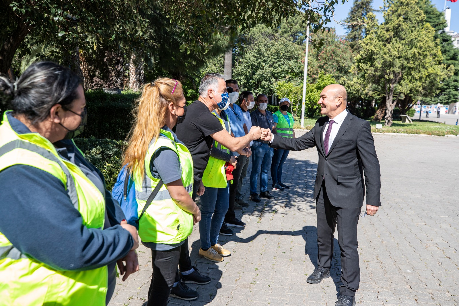 Trafik Hizmetleri Şube Müdürlüğü'nde personelle bayramlaşan Soyer, ardından Tesisler Bakım Onarım Şube Müdürlüğü'ne geçti. Örnekköy Temizlik Şantiyesi'nde personele seslenen Başkan Soyer, “İzmir'e kadın eli değsin derken, hem temizlik hizmetlerinde, park bahçelerde, şoför olarak otobüslerde hep kadın istihdam etmeye çalışıyoruz. Çünkü ben kadınlara daha çok güveniyorum. Sizlerin hem anneliğine güveniyorum, hem bu şehre yapacaklarınıza inanıyorum” diye konuştu.