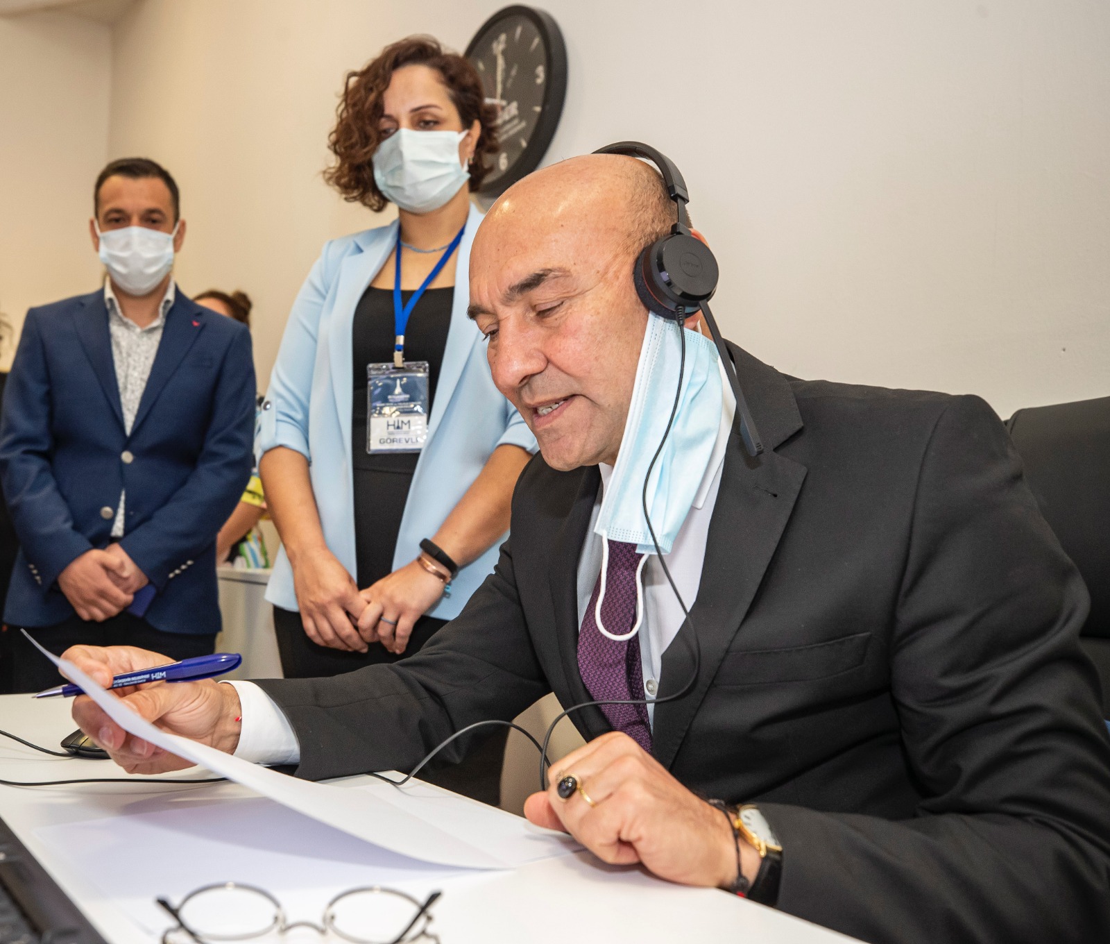 Başkan Soyer, bayramlaşma turlarına Hemşeri İletişim Merkezi'nde (HİM) başladı. Soyer'i Basın Yayın ve Halkla İlişkiler Dairesi Başkanı İlker Kozan karşıladı. Personelle tek tek bayramlaşan Soyer, ziyareti sırasında çağrı merkezine gelen bir telefonu yanıtladı. Soyer, Özgür Acar isimli yurttaşla bir süre sohbet ederek sorunlarını dinledi. Konuşma sırasında notlar da alan Soyer, “Arkadaşlarım sizi arayacak. Hem destek paketlerinin ulaşmasını sağlayacaklar, hem de sosyal yardım kartının yenilenmesi için ne yapılması gerekiyorsa yapacaklar. İyi bayramlar diliyorum” ifadelerini kullandı.