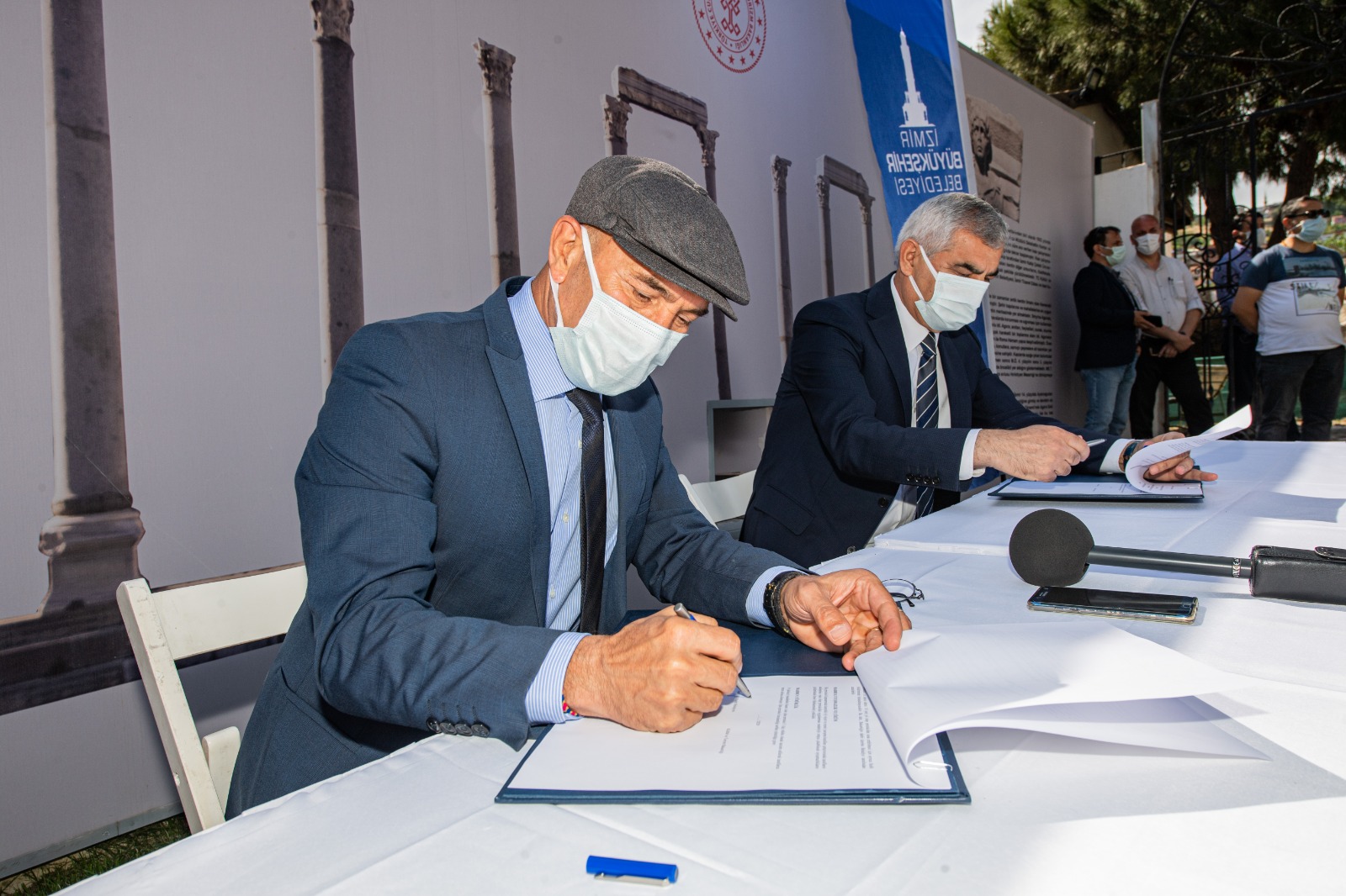 İzmir Büyükşehir Belediyesi kentin tarihi dokusunu gün yüzüne çıkarmak ve geçmişi 2 bin 300 yıl öncesine dayanan antik Smyrna (İzmir) Agorası’nın dünyaya tanıtımı kolaylaştırmak için yaptığı Ziyaretçi Giriş Yapısı, Sergi Evi ve Ziyaretçi Bilgilendirme Noktasını, protokolle Kültür ve Turizm Bakanlığı’na devretti. Restorasyon ve yapı maliyeti 3 milyon lirayı bulan yapıların devri için Agora Ören Yeri’nde tören düzenlendi. Törene İzmir Büyükşehir Belediye Başkanı Tunç Soyer ile eşi Neptün Soyer, İzmir Büyükşehir Belediye Başkan Vekili Mustafa Özuslu, Konak Belediye Başkanı Abdül Batur, Kültür ve Turizm İl Müdürü Murat Karaçanta, İzmir Büyükşehir Belediyesi Genel Sekreteri Dr. Buğra Gökçe, İzmir Büyükşehir Belediyesi Genel Sekreter Yardımcısı Eser Atak katıldı.