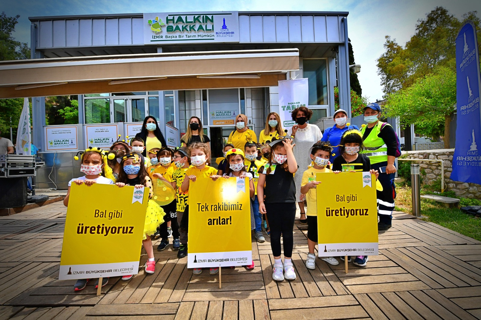 İzmir Büyükşehir Belediye Başkanı Tunç Soyer’in “Başka Bir Tarım Mümkün” vizyonu doğrultusunda küçük ölçekli üreticilere ve arıcılara verilen destekler sürerken, gıda güvenliğiyle ilgili farkındalık çalışmalarına da hız verildi. Büyükşehir, 20 Mayıs Dünya Arı Günü nedeniyle Buca Işılay Saygın Meydanı’nda “Arılar Olmazsa!” etkinliği düzenleyerek çocuklarla arı farkındalık çalışması yaptı. Meydandaki Halkın Bakkalı şubesinde ise arı ürünlerinin olduğu raflar kapatılarak hızla azalan arı popülasyonu ve olası gıda krizine dikkat çekildi.