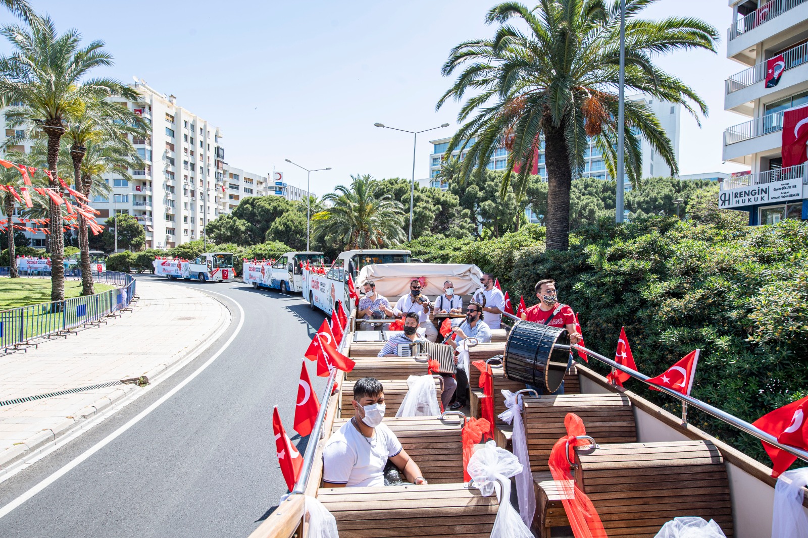 İzmir Büyükşehir Belediyesi’nin 19 Mayıs Atatürk’ü Anma, Gençlik ve Spor Bayramı’nın 102. yıldönümü için hazırladığı dört gün sürecek etkinlikler dizisi kapsamında pandemi nedeniyle zor günler geçiren müzisyenler de aktif rol aldı. 19 Mayıs günü üstü açık otobüslerle kent turu yapan müzisyenler bayramın coşkusunu İzmir’in ilçelerine taşıdı.