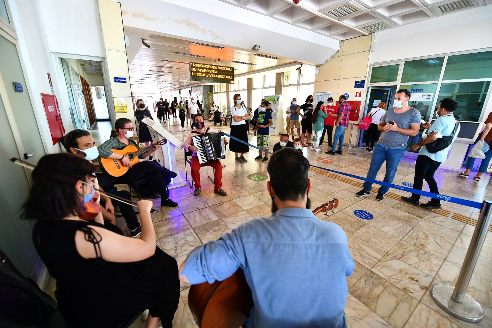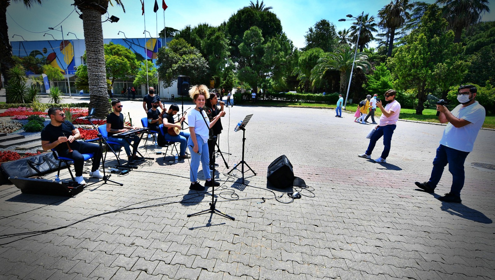 İzmir Büyükşehir Belediyesi’nin düzenlediği 19 Mayıs Atatürk’ü Anma, Gençlik ve Spor Bayramı etkinlikleri kapsamında pandemi koşullarından etkilenen kentteki müzisyenler de görev aldı.
