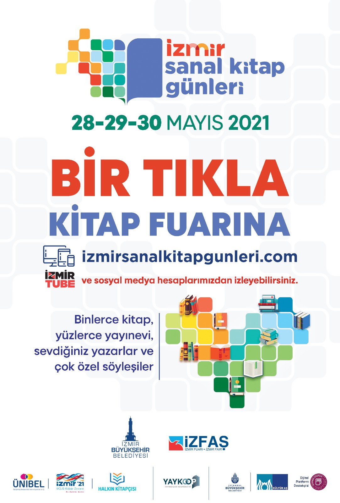 İzmir Büyükşehir Belediye Başkanı Tunç Soyer’in kültürel devamlılık ilkesi doğrultusunda Büyükşehir Belediyesi ilk kez İzmir Sanal Kitap Günleri düzenliyor. Uluslararası etkinlik 28 – 30 Mayıs tarihleri arasında binlerce çeşit kitabı, bir çok yayınevini ve yazarı “bir tıkla” okurla buluşturacak. Başkan Soyer, herkesi etkinliğe davet ederek “Özlemi duyulan kitap fuarı günleri geri geliyor” dedi.