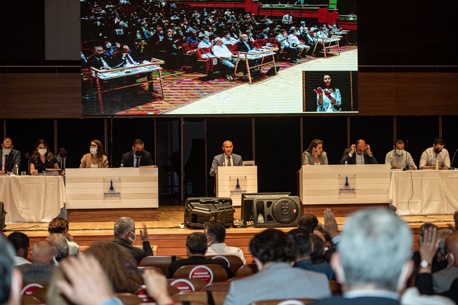 İzmir Büyükşehir Belediyesi Mayıs ayı olağan meclis toplantısı, İzmir Büyükşehir Belediye Başkanı Tunç Soyer yönetiminde yapıldı. Toplantı, Nisan ayında hayatını kaybeden Torbalı Belediye Başkanı İsmail Uygur’un anılmasıyla başladı. İzmir trafiğinde son dönemde yaşanan yoğunluk hakkında konuşan İzmir Büyükşehir Belediye Başkanı Soyer “3 misli bir artış var, muazzam bir artış. Covidi biz getirmedik. Biz dedik ki covid sırasında toplu ulaşım araçlarını kullanmayın. İnsanlar özel araçlarla çıkmaya başladılar trafiğe. Rakamların bu kadar büyük olması gerçekten altyapıyı, dünyanın neresinde olursa olsun zorlar. Bunun siyasi sorumluluğu elbette bizde. Ama bunda birilerinin daha siyasi sorumluluğu var diye düşünüyorum. Türkiye'de hükümetin bir metre metro tüneli olmayan tek kent İzmir. Halkapınar – Otogar Metrosu, 8 yıldır yatırım planında. Onayı verildi, 8 yıldır iz bedeli ile geçiliyor. Bunun bir siyasi sorumluluğu yok mu? Elbette var, İzmirli bunu takdir ediyor. Biz üzerimize düşeni yapmaya devam ediyoruz. Hiç boş durmuyoruz, asla '-mış' gibi yapmıyoruz. Altgeçitlerle, üstgeçitlerle ilgili proje çalışmalarımız devam ediyor. Altın dokunuşlarımız devam edecek. Elbette çok ciddi bir sorun var, trafik sorunu var bu şehirde. Ama İzmir Büyükşehir Belediyesi tüm bu koşullara rağmen bunu çözme gücüne sahiptir. Elimizden geleni yapmaya devam edeceğiz” diye konuştu.