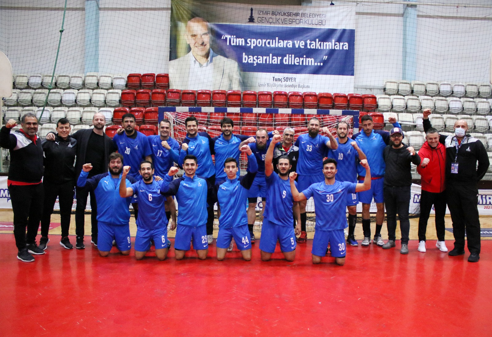 Erkekler Hentbol Türkiye Kupası Eleme Turu C grubunda yer alan İzmir BBSK, Bahçelievler Belediyesi'ni 34-28, Spor Toto'yu da 26-21'lik skorla yenerek grubunu lider tamamladı. Çeyrek final mücadelesinde Beykoz Belediyesi'ne karşı ilk maçı 37-26 kazanan, rövanşı 30-29 kaybeden İzmir BBSK, statüye göre galibiyet ve gol eşitliğinde deplasmanda daha fazla gol atan ekip oldu ve turu geçerek yarı final biletini aldı. Yarı finalde Süper Lig şampiyonu Spor Toto ile karşılaşan mavi-beyazlılar ilk maçı evinde 27-28 kaybederken, deplasmanda rakibini 8 sayı farkla 36-28 yenerek finale kaldı. Erkekler, kupa finalinde Beşiktaş Aygaz ile karşılaşacak.