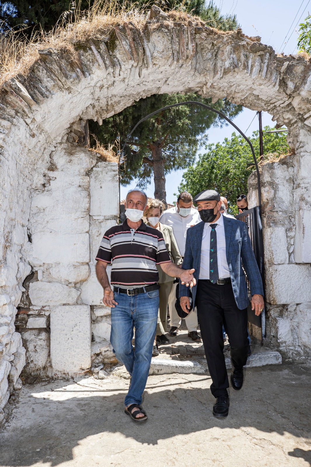 İzmir Büyükşehir Belediye Başkanı Tunç Soyer'in Küçük Menderes ve Bakırçay havzalarında "Başka Bir Tarım Mümkün" sloganıyla başlattığı havza turları, Yarımada’da devam ediyor. Yarımada turuna dün Urla'da başlayan Başkan Tunç Soyer, İzmir Büyükşehir Belediyesi ile İZSU tarafından iki yılda toplam 150 milyon liralık yatırım yapılan Seferihisar'da devam eden projeleri inceledi. Başkan Soyer’in eşi Neptün Soyer, Seferihisar Belediye Başkanı İsmail Yetişkin, İzmir Büyükşehir Belediyesi Genel Sekreteri Dr. Buğra Gökçe, İzmir Büyükşehir Belediyesi Genel Sekreter Yardımcıları Ertuğrul Tugay, Yıldız Devran, Eser Atak, Suphi Şahin, İZBETON Genel Müdürü Heval Savaş Kaya, İZSU Genel Müdürü Aysel Özkan, İzmir Vakfı Genel Müdürü Güven Eken, bürokratlar, muhtarlar ve vatandaşların katıldığı program, Kasım Çelebi Camii ve tarihi medresedeki restorasyon çalışmalarına yönelik inceleme ile başladı. Başkan Soyer'e mahalleliler tel kırma tekniğiyle yapılan Atatürk tablosu hediye etti.
