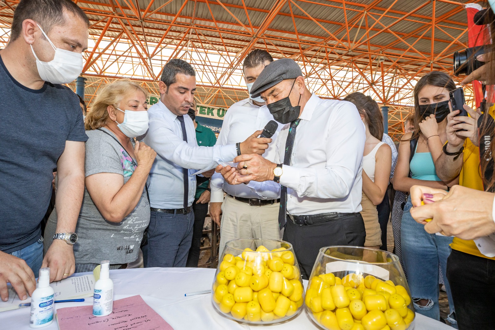 Başkan Soyer, 'Başka Bir Tarım' vizyonu doğrultusunda 2009 yılında Seferihisar'ın merkezinde kurulan üretici pazarını dolaşarak üreticilerle sohbet etti.