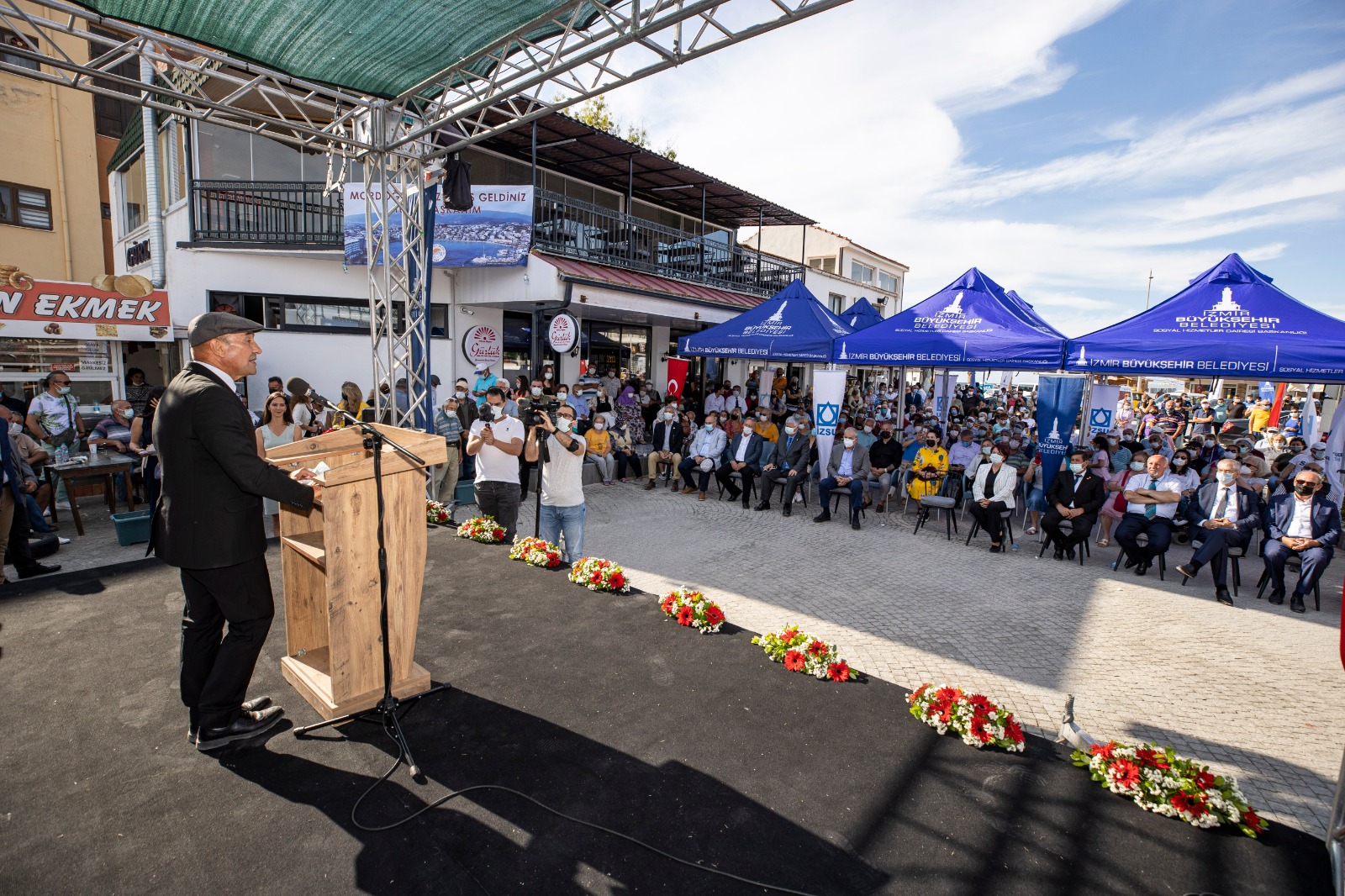 İzmir Büyükşehir Belediye Başkanı Tunç Soyer ise Karaburun'a hak ettiği hizmeti verdiklerini ve son 2 yılda 121 milyon liralık yatırımla ilçenin su ile altyapı sorunlarını çözüme kavuşturmanın gururunu yaşadıklarını belirtti. 65 milyon liralık yatırımla yeni bir kanalizasyon şebekesinin yapımını tamamladıklarını, bunu da işletmeye aldıklarını ifade eden Başkan Tunç Soyer, “Böylece Mordoğan’da evlerdeki foseptik sistemini devre dışı bırakarak bölgemize hizmet veriyoruz. Yeni kanalizasyon şebekesi; Mordoğan merkez, Ardıç, Çatalkaya, Yenicepınar ve Eski Mordoğan köyünü de kapsayacak şekilde geniş bir alana hizmet sunacak. Devam eden çalışmalarımız kapsamında yaklaşık 100 kilometrelik kanalizasyon, 13 kilometrelik yağmur suyu hattının imalatını bitirdik” dedi.