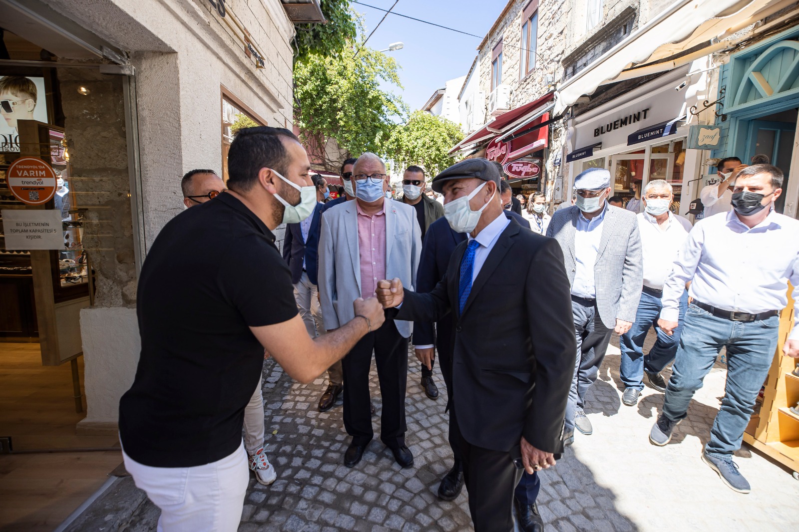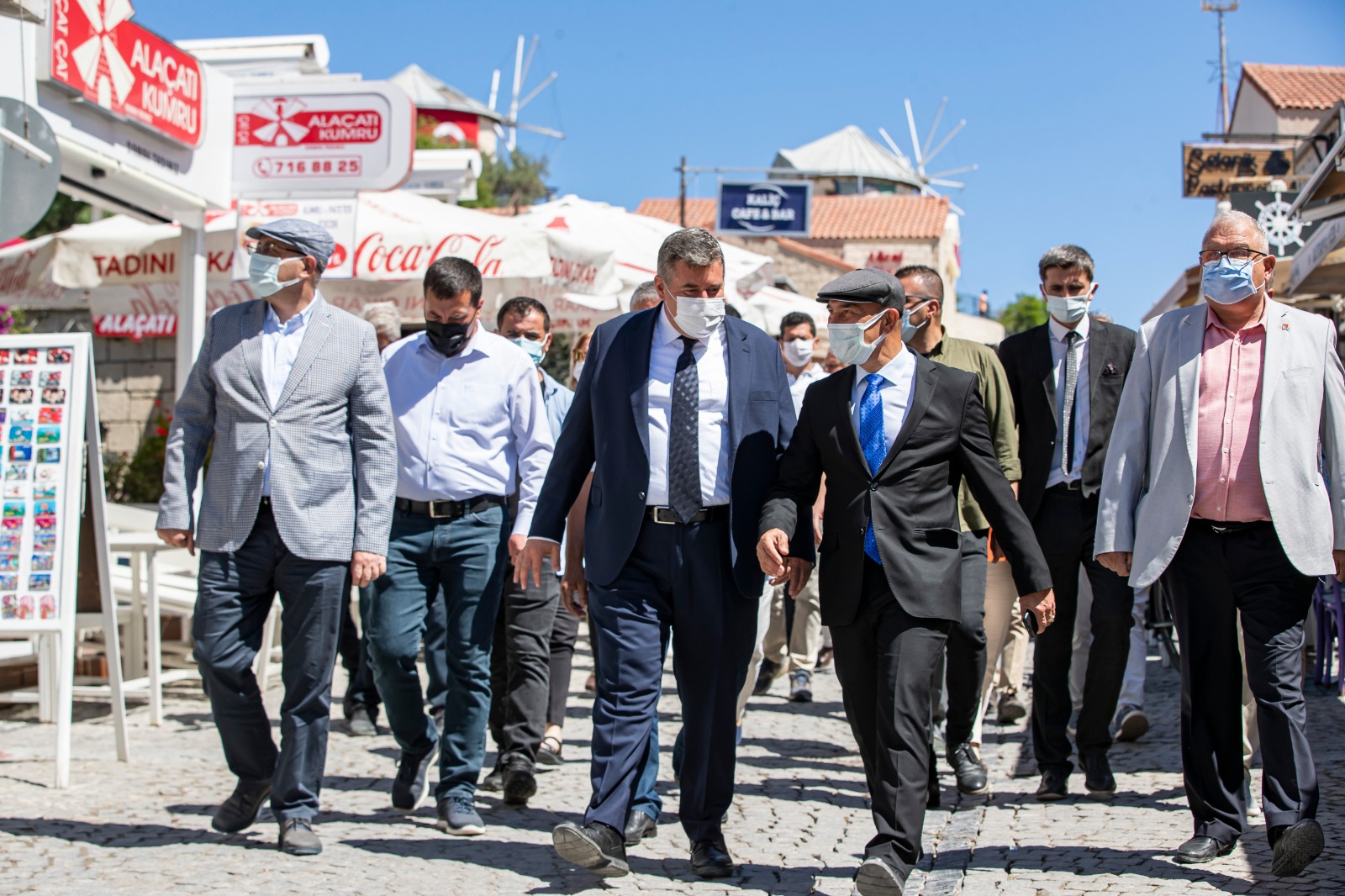 İzmir Büyükşehir Belediye Başkanı Tunç Soyer, her yıl yerli ve yabancı binlerce turisti ağırlayan Çeşme'de, koronavirüs salgınıyla mücadele kapsamında uzun bir sürenin ardından yeniden hizmet vermeye başlayan esnafı ziyaret ederek hayırlı işler diledi. Bir buçuk yılı aşkın bir süredir yaşanan krizin herkesi canından bezdirdiğini ifade eden Soyer, “Ciddi bir yoksullaşma, ciddi bir işsizlik var. Dün alınan kararla ilk defa normalleşmeye doğru bir adım atılmış oldu. Dilerim bu adımın devamı gelir. Hayatımızın tam anlamıyla normale döneceği günleri birlikte yaşarız. Ama bugün ilk kez bu normalleşmenin başlamasıyla, kafe ve restoranların açılmasıyla beraber değerli başkanımla Alaçatı’da esnafımıza iyi sezonlar dilemek, iyi dileklerimizi paylaşmak için ziyaretlerine geldik. Onlara moral vermek, onların iyi bir sezon geçirmesi için elimizden gelen ne varsa yapmaya devam edeceğimizi söylemek istiyoruz” dedi.