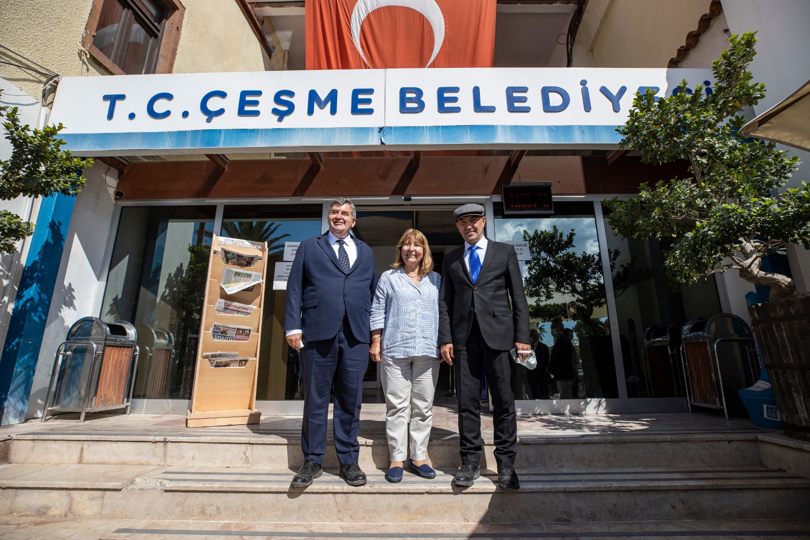 İzmir Büyükşehir Belediye Başkanı Tunç Soyer, Çeşme Belediye Başkanı Ekrem Oran'ı da makamında ziyaret etti. Ardından ilçenin yerel ırklarından olan kaçeli koyun ağılında eşi Neptün Soyer'le kuzuları sevdi. Kaçeli ırkının çoğalması ve yeniden üretime katılması için çalıştıklarını söyledi. Tarlalarda çalışan üreticilerin de ziyaret ederek, üretimin önemine değinen Soyer, restore edilen tarihi Çakabey Camisini inceledi. Çeşme Belediye Başkanı Ekrem Oran'la esnafı dolaşan İzmir Büyükşehir Belediye Başkanı Tunç Soyer, ardından CHP İlçe Başkanı Sait Kavasoğullar'ı ile yönetimini, daha sonra da İYİ Parti İlçe Başkanı Volkan Evci ve ilçe teşkilatını ziyaret etti. Ziyarete CHP Parti Meclis Üyesi Rıfat Nalbantoğlu ile CHP İzmir Milletvekili Tacettin Bayır da katıldı.