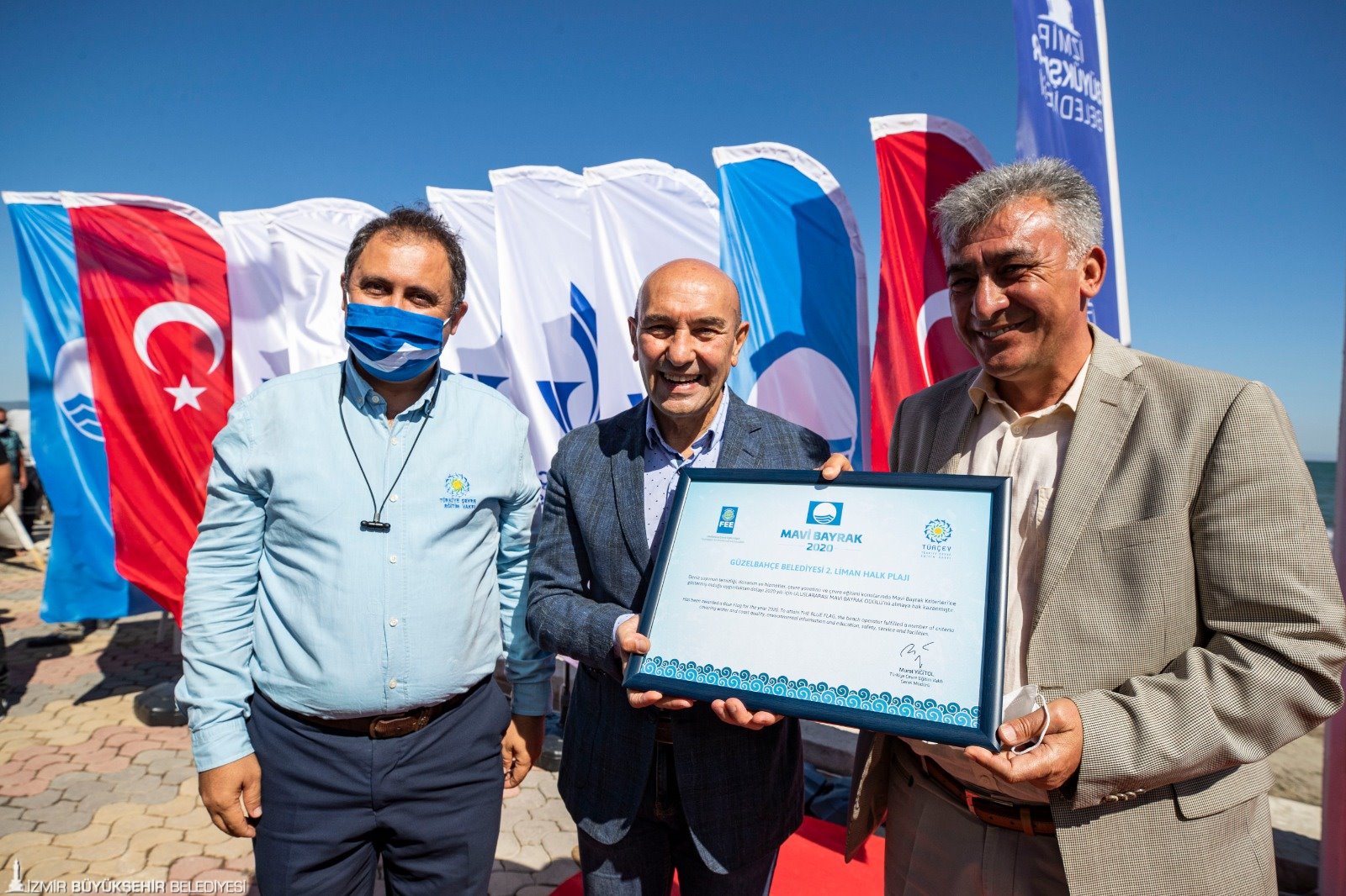 İzmir'i dünya ölçeğinde bir turizm çekim merkezi haline getirmek için çalıştıklarını ve bunun başarılı sonuçlarını almaya başladıklarını belirten İzmir Büyükşehir Belediye Başkanı Tunç Soyer, dünyanın 50 ülkesinde uygulanan Mavi Bayrak Programının, turizm sektöründe plaj ve marinalara verilen çok önemli uluslararası bir çevre ödülü olduğunu aktardı. Soyer şöyle devam etti: "Mavi Bayrak, deniz suyunun temizliğini, çevre yönetimine verilen önemi, plaj veya marinaların hijyenini ve güvenilirliğini uluslararası anlamda teyit ediyor. Küresel pandemi yaşadığımız bu dönemde mavi bayrak uygulaması, yerli ve yabancı turistler için çok önemli bir turizm iletişimi niteliği taşıyor. Dünyanın her yerinden gelecek turistler için İzmir’in güvenilir ve temiz bir şehir olduğu bir kez daha ortaya çıktı. En önemli değerimizin bu olduğuna inanıyoruz. Bu güveni vermek için her türlü çalışmayı yapıyoruz.”