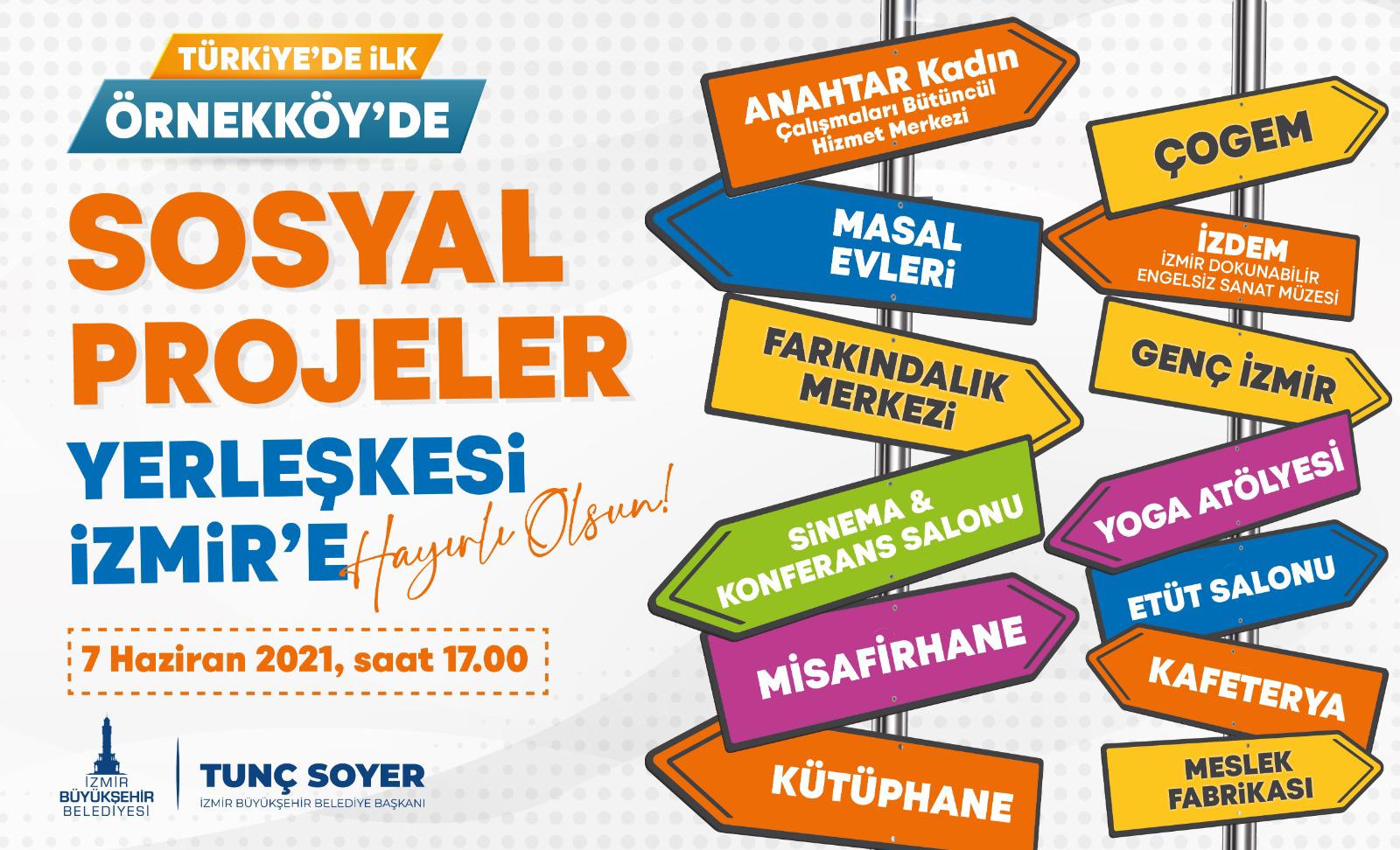 İzmir Büyükşehir Belediye Başkanı Tunç Soyer “Eşit Bir Yurttaşlık Mümkün” vizyonuyla kadın, çocuk, genç ve engelli bireylere fırsat eşitliği sunacak birimleri tek çatı altında toplayan Örnekköy Sosyal Projeler Yerleşkesi’nin açılışını yaptı. Türkiye'ye model olacak bu benzersiz merkezde kadın istihdamını artıracak Meslek Fabrikası Kurs Merkezi, 3-6 yaş grubu çocuklar için Masalevi, Engelli Farkındalık Merkezi, Çocuk ve Gençlik Merkezi, Dokunulabilir Engelsiz Modern Sanatlar Müzesi, 34 odalı misafirhane, gençlerin yaratıcılığını ortaya çıkaracak İnovasyon Merkezi, kütüphane, etüt ve konferans salonları, yoga ve pilates atölyesi, okuma salonu, sivil toplum kuruluşlarının eğitimlerini ve çalıştaylarını yapacağı alanlar ve kafetarya yer alıyor.