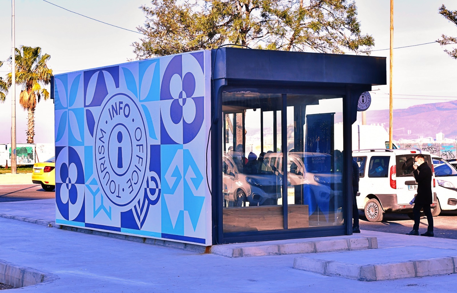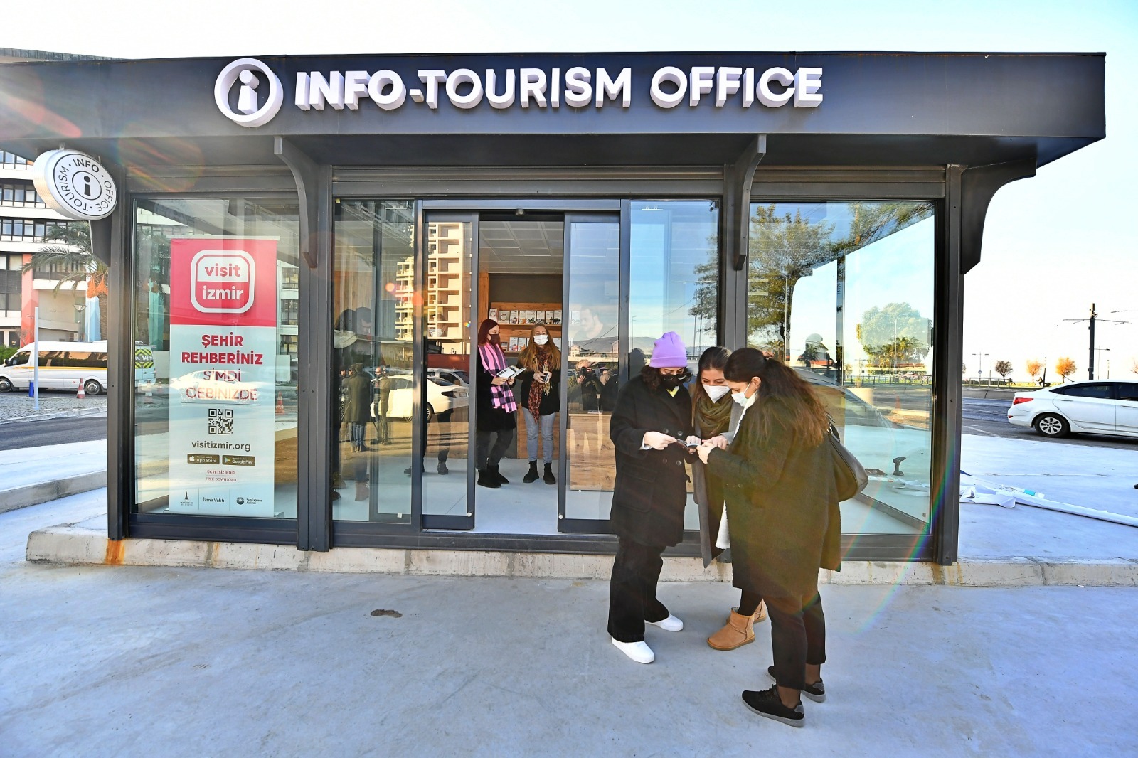 Turist yoğunluğunun fazla olduğu Kemeraltı bölgesinde konteyner tipi olarak yapılan ve 18 metrekare iç hacmi olan ofiste, İzmir Büyükşehir Belediyesi Turizm Şube Müdürlüğü bünyesindeki uzman personel tarafından yerli ve yabancı turistler bilgilendirilerek yönlendirmeler yapılıyor. Ofislerde ayrıca turistler için İzmir’e ve Kemeraltı bölgesine ait Türkçe-İngilizce tanıtım dokümanları, kent rehberi ve tanıtım filmleri yer alıyor. Visit İzmir uygulaması ile turistlerin şehri nasıl keşfedebileceği aktarılıyor.