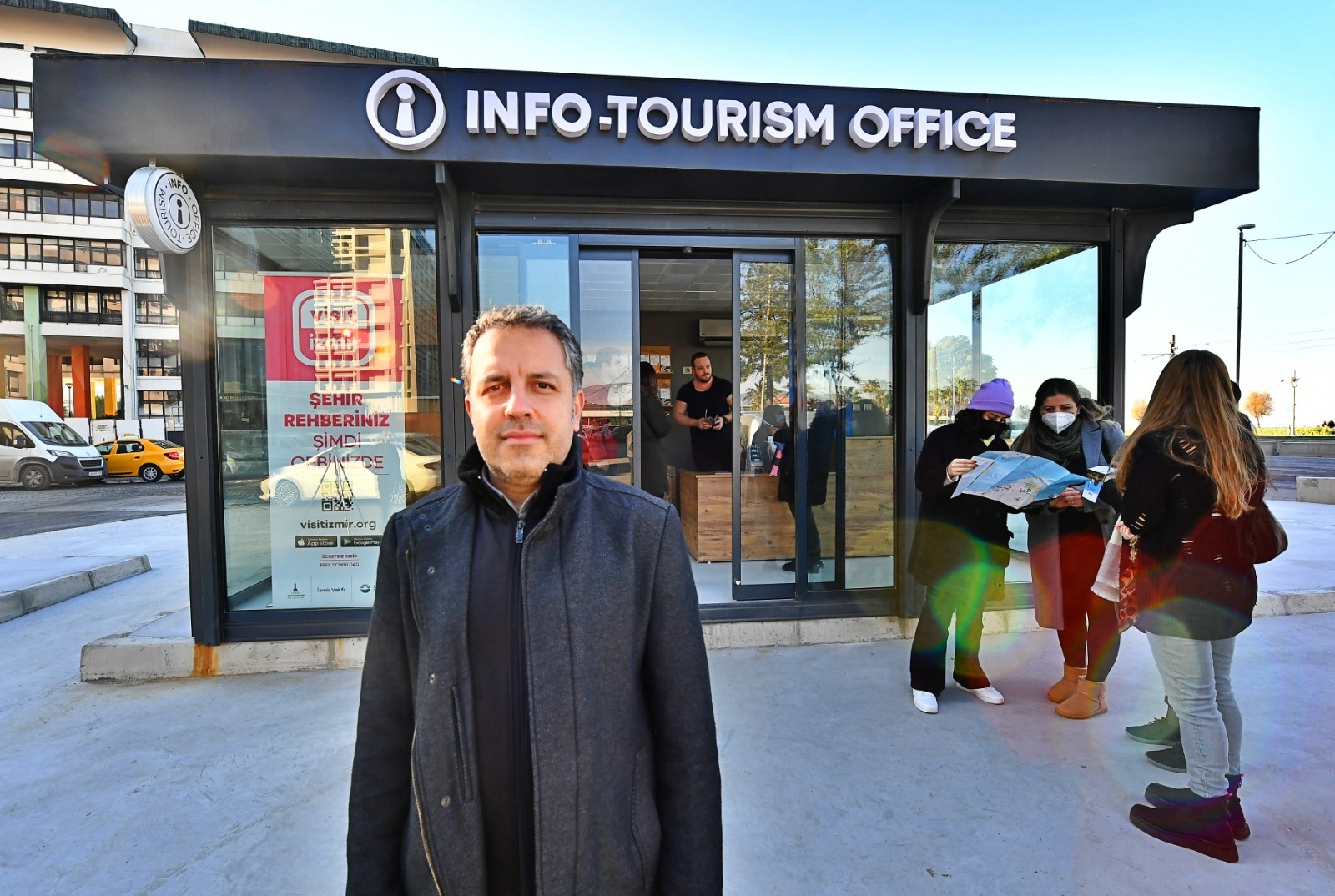 Çalışmalar hakkında bilgi veren İzmir Büyükşehir Belediyesi Turizm Şube Müdürü Melih Kayacık, “Turizm Stratejisi ile turizm alanındaki yol haritamızı belirledik. Pandemi sürecinde de turizm altyapımızı güçlendirmek için çalışmalarımıza devam ettik. Turuncu Çember ile İzmir’i güvenilir ve sağlıklı bir destinasyon olarak konumlandırırken; hem Visit İzmir uygulamasını hayata geçirdik hem de turizm bilgilendirme ofislerimizi hizmete açtık. Kentimize gelen turistlere hem bölgeyi hem de İzmir’i tanıtan dokümanlar veriyoruz. Turistlerin sorduğu sorulara yanıt verip yönlendirme yapıyoruz. Buradaki amacımız, İzmir’i bir turizm kenti olarak öne çıkarmak ve İzmir’in turizm değerlerinin bilinmesini sağlamak. Alsancak ve Kültürpark’ın ardından Konak’taki bilgilendirme ofisimiz hizmete girdi. Buranın bir özelliği de önünde yer alana otoparkın tur araçları tarafından yolcu indirme bindirme yeri olarak kullanılmasına olanak sağlaması. Turistler burada arkadaşlarımız tarafından karşılanıyor. İlerleyen günlerde Kemeraltı Bilgilendirme Ofisini açacağız. Alsancak Limanı ve Alsancak Vapur İskelesi olmak üzere turist yoğunluğunun yüksek olduğu bölgelerde yeni ofisler açmayı hedefliyoruz” diye konuştu.