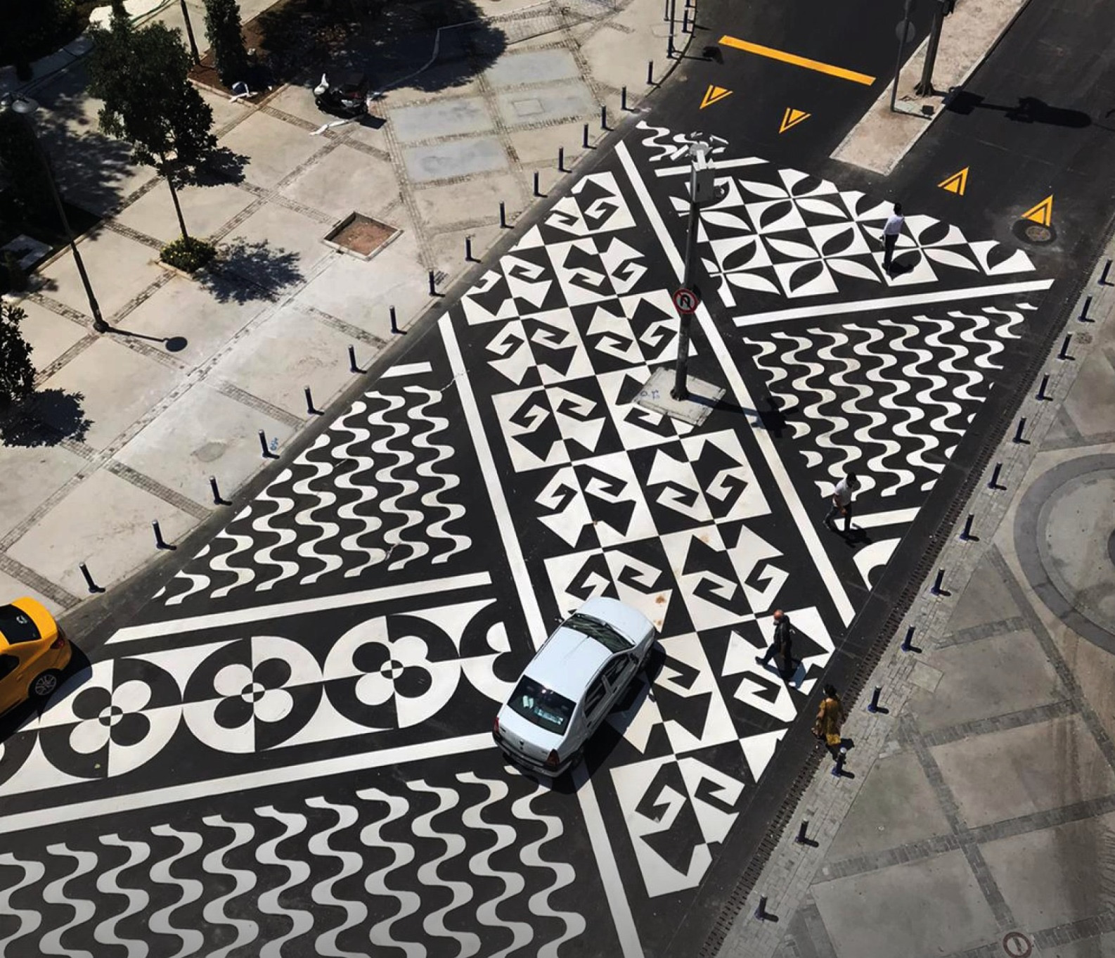 İzmir Büyükşehir Belediyesi proje kapsamında kentte yaya trafiğinin en yoğun olduğu bölgelerden Alsancak Talatpaşa Bulvarı’nın Kıbrıs Şehitleri Caddesi kısmında yayaların geçmesi için Avrupa’daki örneklerine benzer 34 metre uzunluğunda bir yaya platformu yaptı. Yükseltilmiş yaya geçidi üzerine İzmir’in tarihi köklerinden gelen figüratif desenler çalışıldı. Engelli ve yaşlı vatandaşların erişimi göz önünde bulundurularak yol ve kaldırımlar aynı seviyeye getirildi. Böylece alan mini bir meydan görünümü kazanırken yayaların kaldırımlara inip çıkmadan karşıya geçişi de sağlanmış oldu.