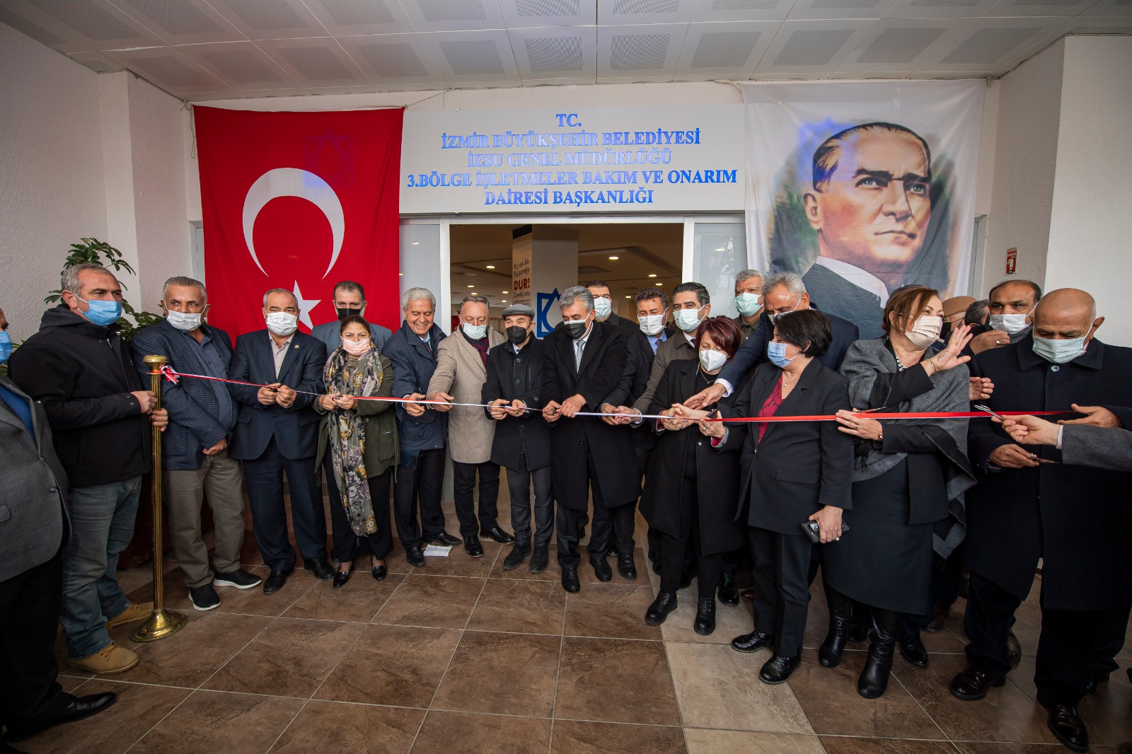 İzmir Büyükşehir Belediyesi, yerinde ve hızlı hizmet anlayışı ile Yarımada bölgesine hizmet edecek İZSU Hizmet Ofisi'ni açtı. Güzelbahçe Atatürk Kültür Merkezi içerisinde bulunan İZSU Genel Müdürlüğü 3. Bölge İşletmeler ve Bakım Onarım Dairesi Başkanlığı Hizmet Ofisi’nin açılış törenine İzmir Büyükşehir Belediye Başkanı Tunç Soyer, CHP İzmir Milletvekili Tacettin Bayır, CHP Bursa Milletvekili Orhan Sarıbal, Güzelbahçe Belediye Başkanı Mustafa İnce, Narlıdere Belediye Başkanı Ali Engin, Seferihisar Belediye Başkanı İsmail Yetişkin, Menderes Belediye Başkanı Mustafa Kayalar, İzmir Büyükşehir Belediyesi Başkan Vekili Mustafa Özuslu, İzmir Büyükşehir Belediyesi Genel Sekreteri Dr. Buğra Gökçe, meclis üyeleri, belediye bürokratları, muhtarlar ve yurttaşlar katıldı.