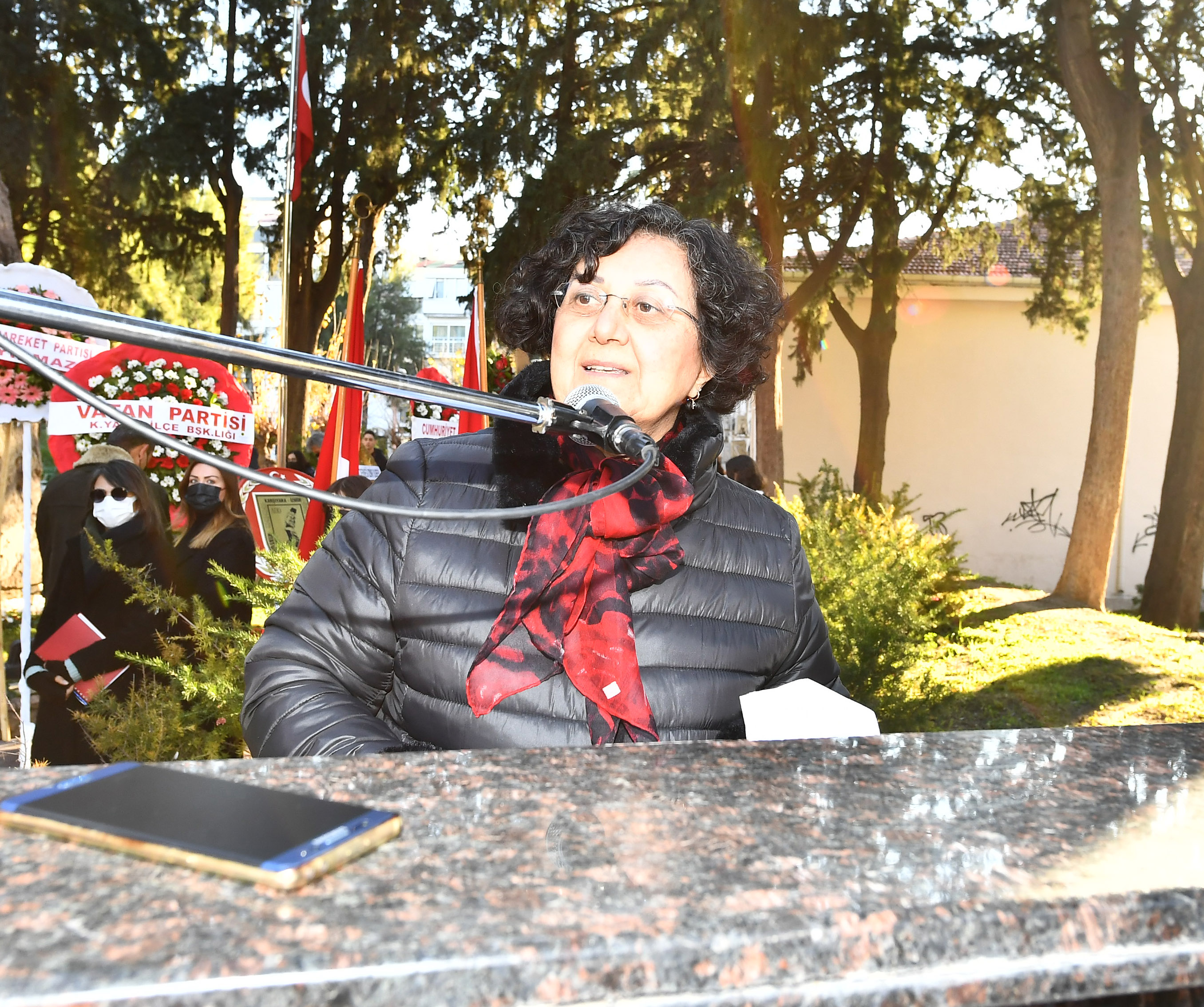 Türk Kadınlar Birliği Karşıyaka Şube Başkanı Mehpare Özkaba ise, “Bugün Zübeyde Hanım’ı anmak demek, koşullar ne olursa olsun Cumhuriyet ve değerlerini, onun mimarı Mustafa Kemal Atatürk’ü, O’nu dünyaya getirip yetiştiren anneyi ve tüm anneleri bir kez daha anlamak ve korumak demek. Işıklar içerisinde, huzurla uyu değerli annemiz. Atamızın kabriniz başında ettiği yemin, biz torunlarınız için de hala bir vicdan ve namus borcu olarak yüreğimizdeki en derin emanettir” diye konuştu.