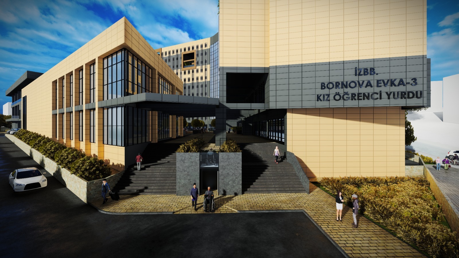 Bornova Erzene Mahallesi’nde 32 bin metrekare kullanım alanına sahip olacak kız öğrenci yurdunda 229 kişilik konferans salonu, 94 kişilik kütüphane, 300 kişilik yemekhane, 120 kişilik kafeterya, resim ve müzik atölyeleri, 300 metrekarelik spor salonu, çamaşırhane, 80 araçlık otopark ve sığınak bulunacak. Yeşil odaklı tasarlanan yurt binasında geniş bir iç avlu olacak ve katlarda bahçeler yer alacak. Yurt odaları üç kişilik olacak, on da tek kişilik oda bulunacak. İzmir Büyükşehir Belediyesi uygulama projesi hazır olan öğrenci yurdu için önümüzdeki aylarda ihaleye çıkacak. İhale sürecinin tamamlanmasının ardından yurt inşaatının bu yıl içinde başlaması hedefleniyor.