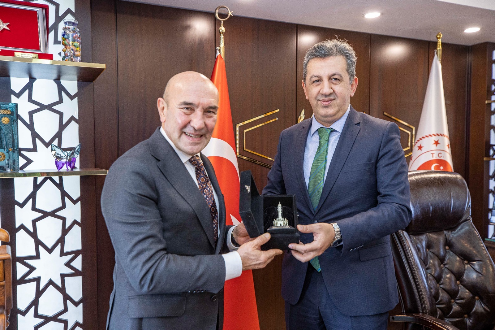 İzmir Büyükşehir Belediye Başkanı Tunç Soyer, 15 Ekim’de İzmir Cumhuriyet Başsavcılığı’na atanan Mustafa Öztürk’ü İzmir Adliyesi’nde ziyaret etti. Başkan Tunç Soyer, Başsavcı Öztürk’e görevinde başarılar diledi ve İzmir’in simgesi olan tarihi Saat Kulesi’nin maketini hediye etti.