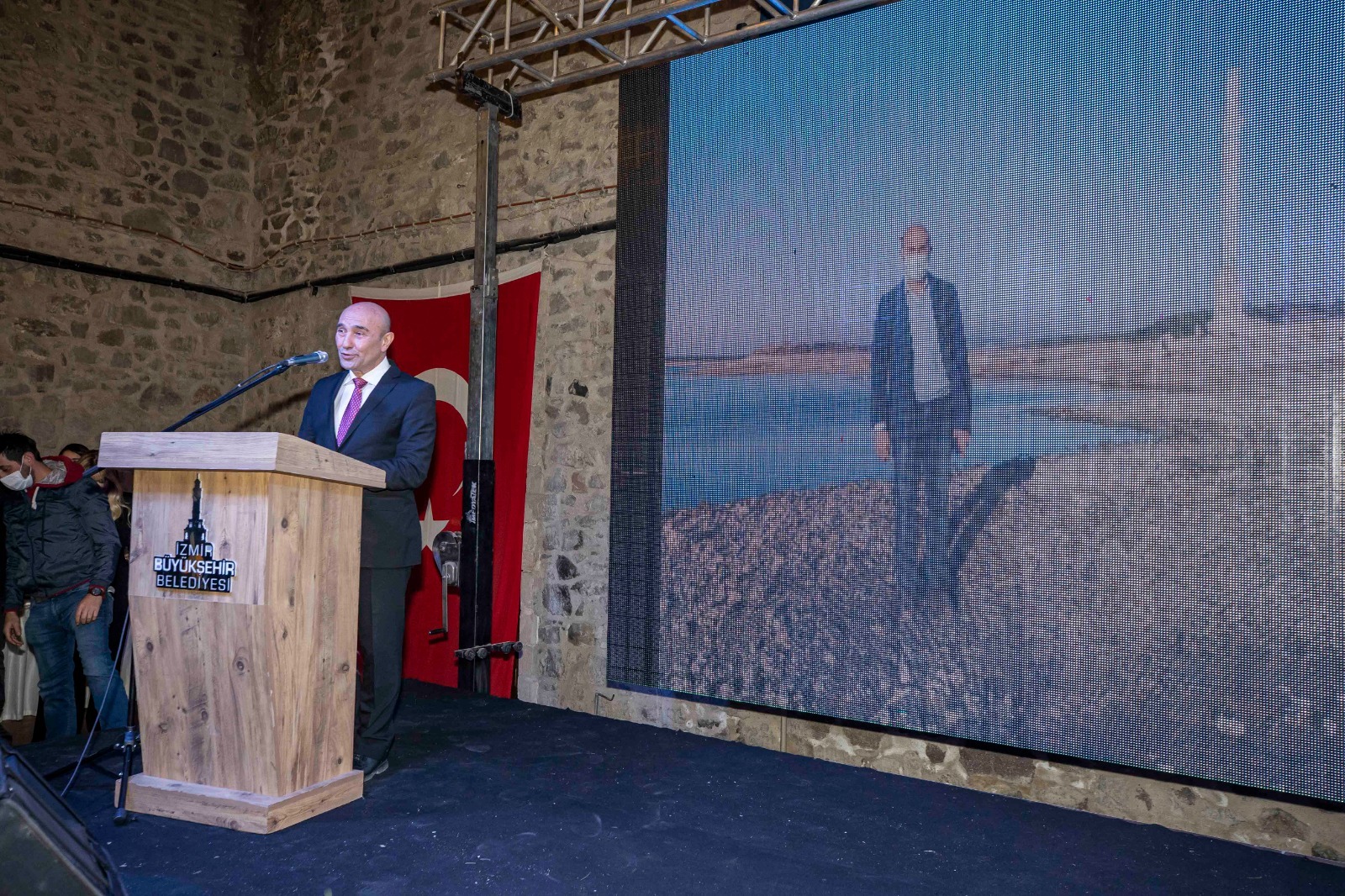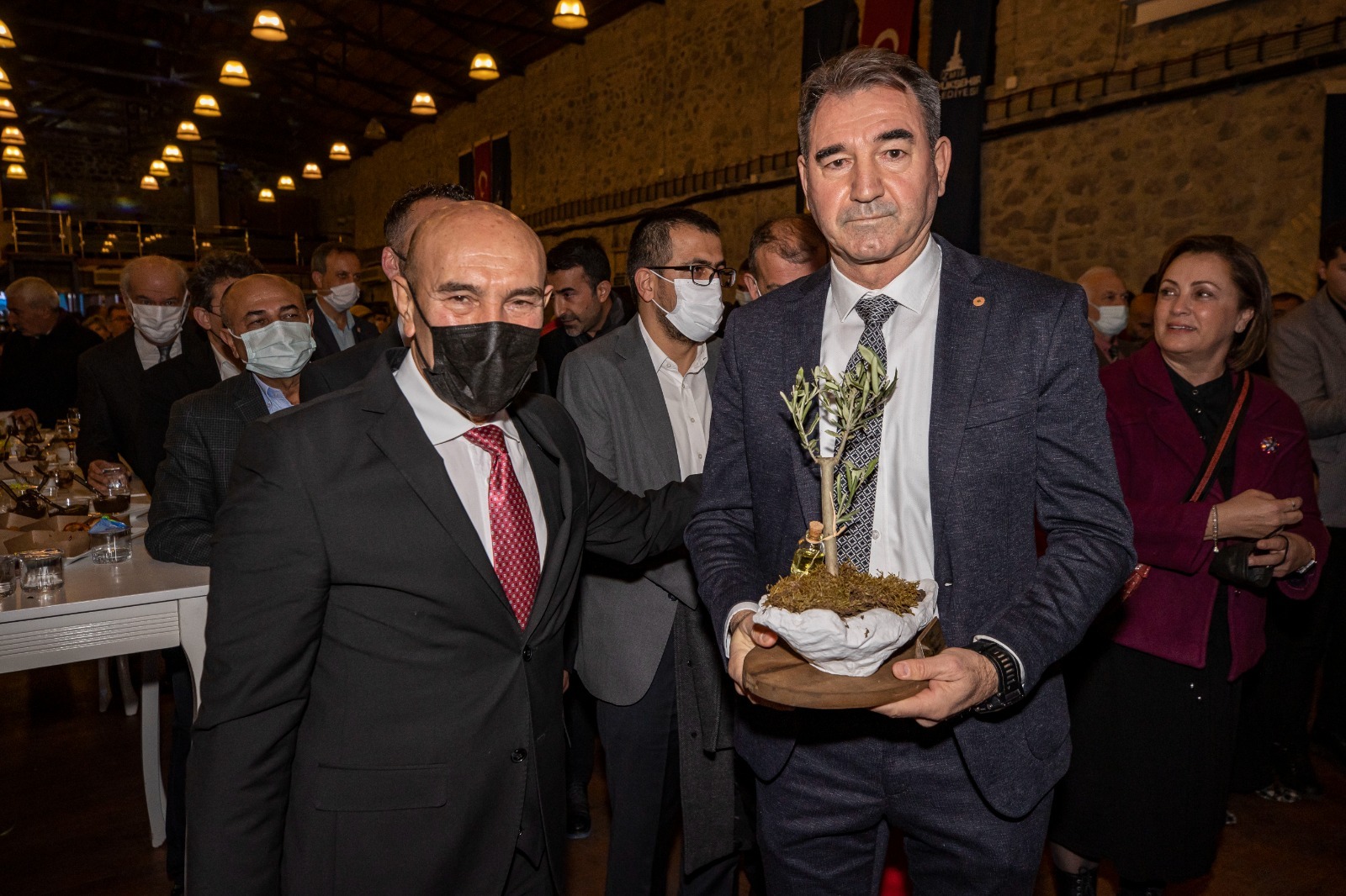 İklim değişikliğine karşı çalışmaları nedeniyle 2021 İz Bırakanlar ödülüne layık görülen Başkan Tunç Soyer, “Doğayla uyumlu bir uygarlık kurmanın insanlığın en temel meselesi haline geldiği çağda yaşıyoruz. Bu çağın sonunu biz belirleyeceğiz. Ya iklim devrimiyle doğadaki tüm canlılarla birlikte yaşamaya devam edeceğiz ya da gezegenimizin yangın yerine dönmesine seyirci kalacağız. Gezegenimiz bizim ortak kaderimiz. Burası milyarlarca aynı cümlenin aynı anda söylenip tek bir hikayeye dönüştüğü yer. Her birimizin hangi cümleler kurduğunun çok önemi var. Ortak hikayemizin mi yoksa kendi hırsımızın mı cümlelerini kuruyoruz. Gezegenimizin geleceğini belirleyecek bu. Gezegenimizin bu harap hali bize çok açık anlatıyor ki insanın doymak bilmez cümlelerini duymaya tahammülü yok. Bu nedenle biz İzmir’de başka cümleler kurarak başladık işe. Başka bir tarım mümkün diyoruz. Çünkü iklim kriziyle yüzleşen çağımızda en eksilen şey su ve biyolojik çeşitlilik. Her ikisinin de sebebi yanlış tarım politikaları” dedi.