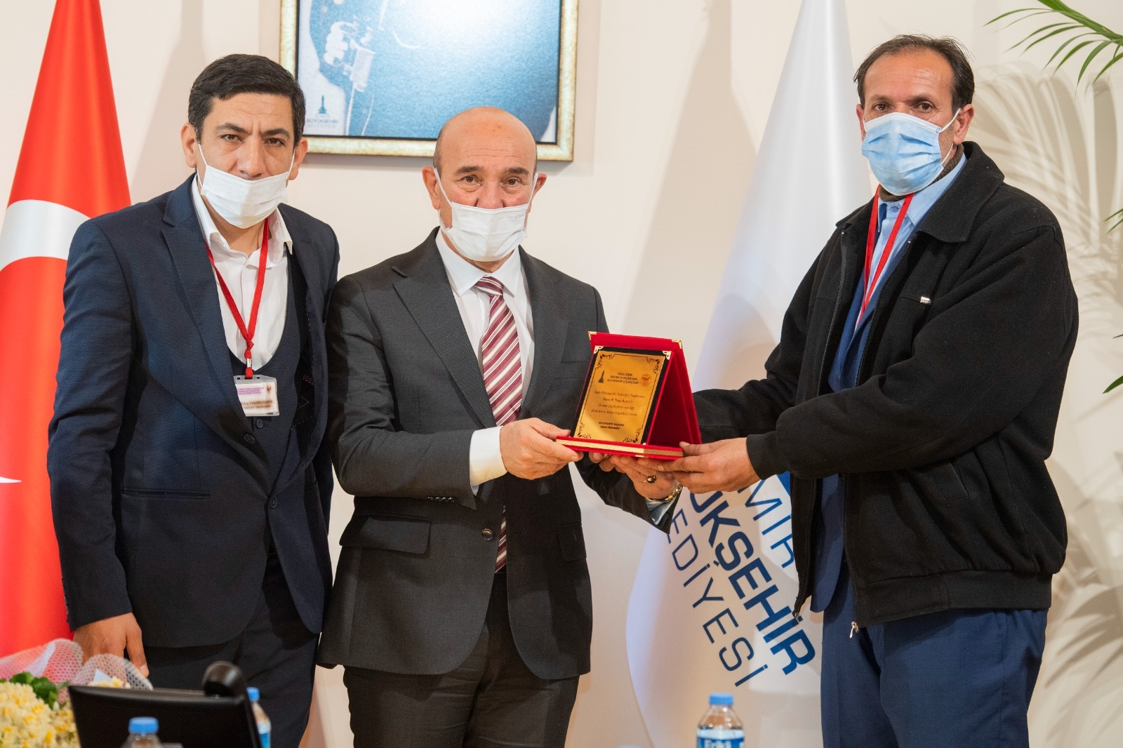 Refahı kentin her tarafına yayma amacıyla çalışmalarını sürdüren İzmir Büyükşehir Belediye Başkanı Tunç Soyer, CHP İzmir Milletvekili Özcan Purçu, İzmir Çiçekçiler Federasyonu Başkanı Yüksel Ördekoğlu ile seyyar çiçekçileri ağırladı.