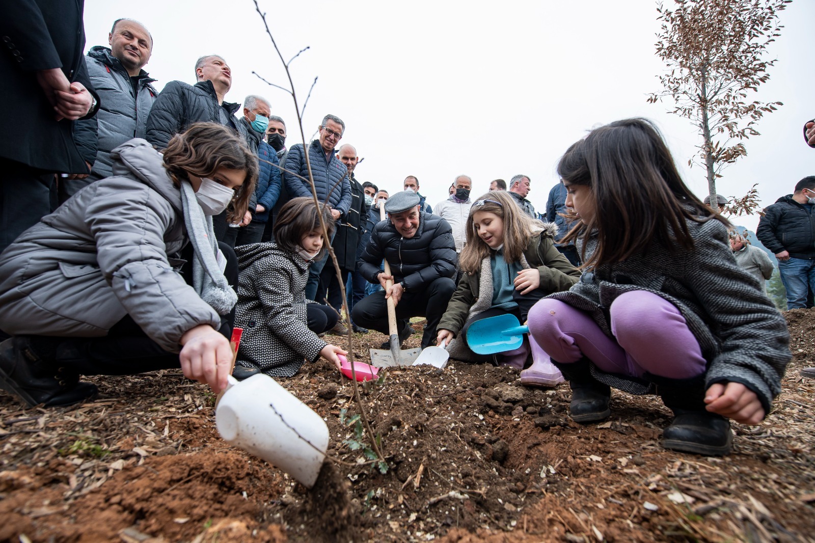 Başkan Tunç Soyer’i alanda Seferihisar Çocuk Belediyesi’nin minikleri çevreci pankartlarla karşıladı. Teker teker alandaki stantları gezen ve doğal bitki örtüsü hakkında bilgi alan Başkan Tunç Soyer, alanda kurulan bağış alanında iki adet tüylü meşe ağacı fidesi aldı. Etkinlikte ilk fidanı Başkan Tunç Soyer ve eşi Neptün Soyer toprakla buluşturdu. Ardından doğaseverler ve sivil toplum kuruluşları bağışladığı 3 bin 816 fidanın dikimini yaptı. Büyükşehir Belediyesi tarafından ulaşımı sağlanan yurttaşlar, yeşil bir kent için destek olurken unutamayacakları bir deneyim yaşadı.