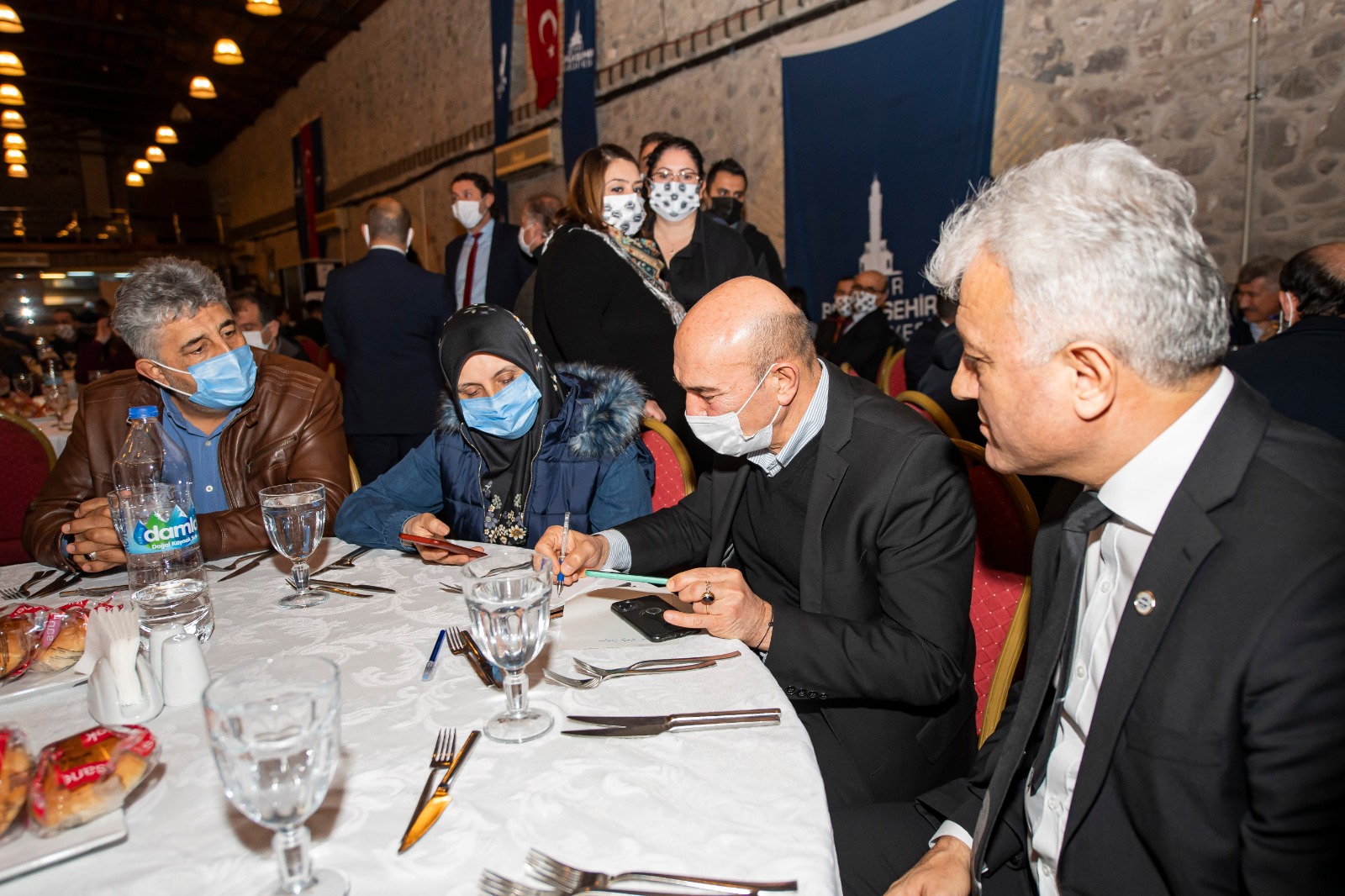 Başkan Tunç Soyer, sırayla tüm misafirlerin masasını ziyaret ederek misafirlerle yakından ilgilendi. Hayatını kaybeden yurttaşları rahmetle anan Soyer, bu yurttaşların yakınlarının yaşadığı sorunlarını, taleplerini dinledi ve tek tek not aldı.